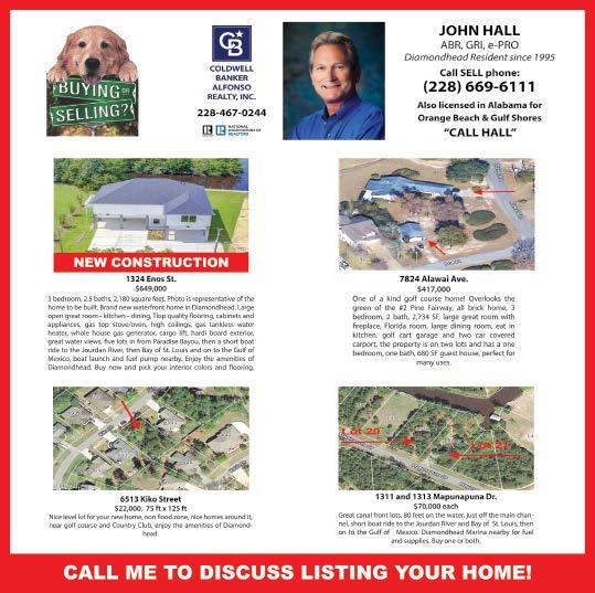 MARCH 2024• 31 DIAMONDHEAD NEWS TO ADVERTISE IN THE DIAMONDHEAD NEWS OR FOR SUBSCRIPTION INFORMATION, PLEASE CALL JANET AT 601-850-3939. ThAnK You foR REAdin G ThE diAmondhEAd nEws® To AdvERTisE in ThE diAmondhEAd nEws, plEAsE Call Janet at 601-850-3939