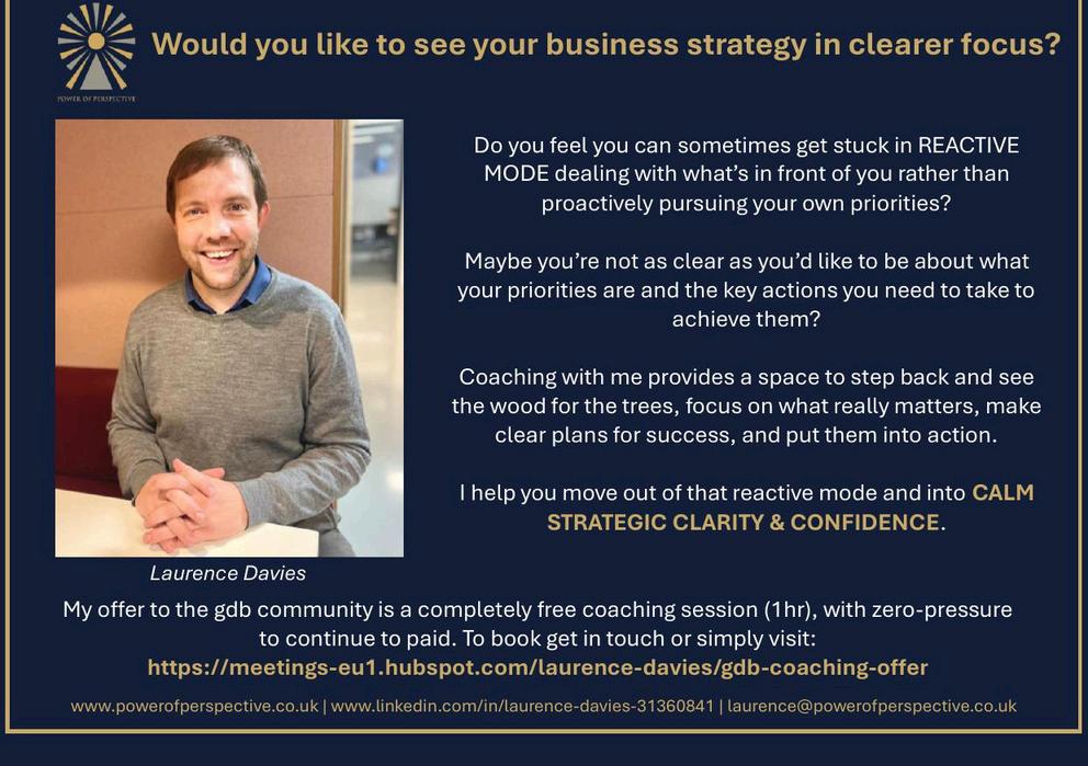 I’m Laurence Davies – a Founders & Executive Coach, Strategic Consultant, and Board Advisor.