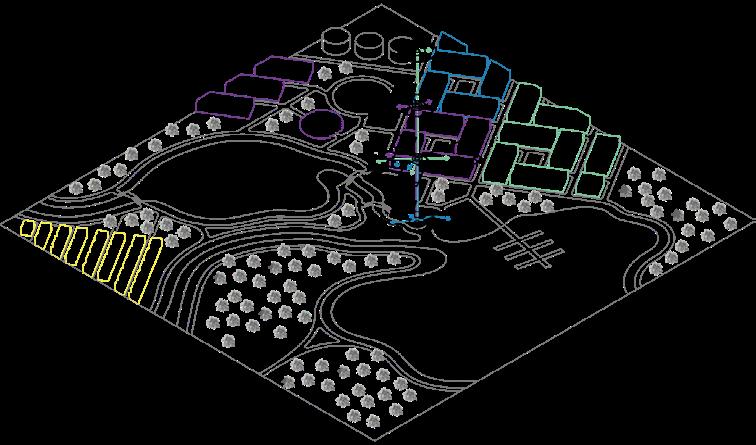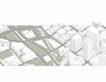 We were tasked with designing over 22 acres of land close to the Berkley Riverfront in Kansas City. The masterplan was to cater to the foot traffic that would come to and from the new soccer stadium located on the northeast corner of the site. Using the surrounding lines from infrastructures, buildings, and the bridges, we had to design to accommodate over 800,000 sq ft of residential, 100,000 sq ft of commercial, and 300,000 sq ft of parking. After designing the general circulation of the site, we were asked to place a “landmark” building somewhere on the site. This building was to cater to the river district, the new residential apartments, the new stadium, and the new pedestrian train route surrounding the site.