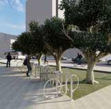 Bike racks for people to borrow or park their bikes as they explore downtown.