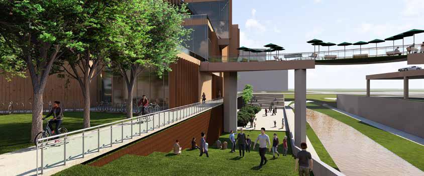 Many features are added to enhance the experience of not just the building, but the creek and the community aspect of downtown Denver.