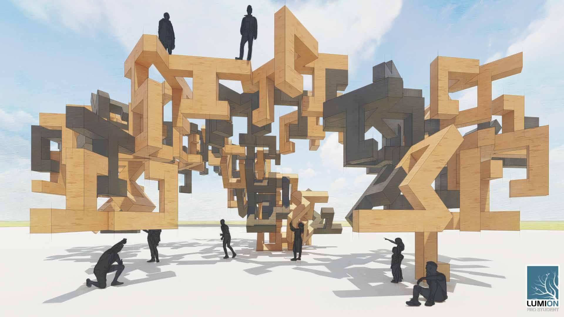 After crafting our manifestos, we were asked to build/ design an object that embodies our manifesto. Using this instrument, we were able to take observations and ideas from the object and utilize them in the initiatial design process to get our building form. This object was centered around the dynamism of what boxes can be used for. Each block can slide, fit, or adjust to at least 2 other blocks. The user is able to have complete control of the object to get different outcomes of the shapes produced.