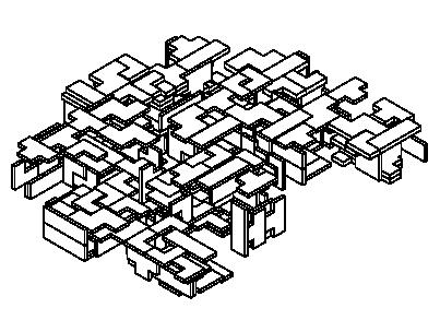 Hierarchy is achieved through manipulation of the boxes’ dimensions, orientation, and placement.