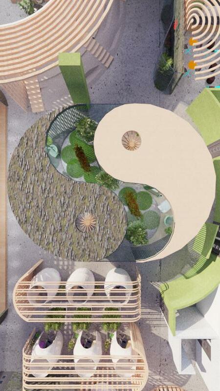 Ambiente que me proyecte relajación y pureza utilizando elementos de la filosofía