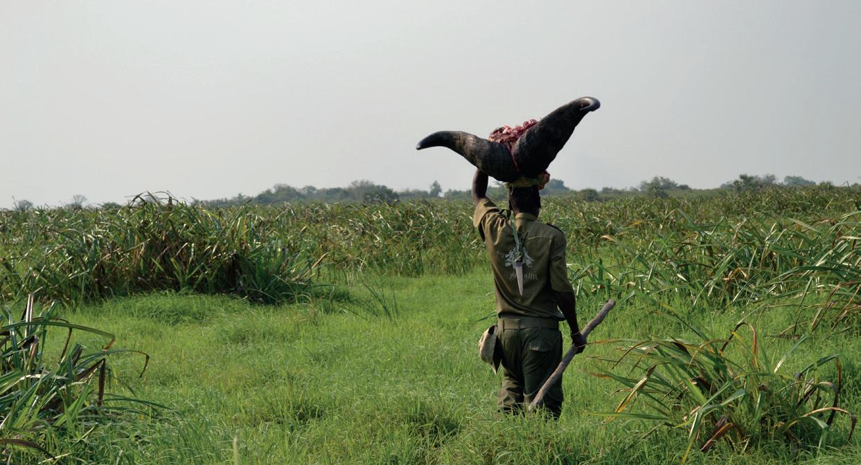 forest cover. Next to the river itself is dense forest and huge papyrus swamps. The district covers some 500,000 ha and borders the Murchinson Falls National Park for a stretch of 110km, while to the west it borders the Nile for 78km. It is still realistic to shoot Nile Buffalo, Uganda Kob, hartebeest and waterbuck.