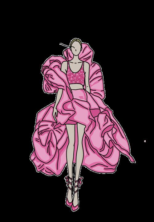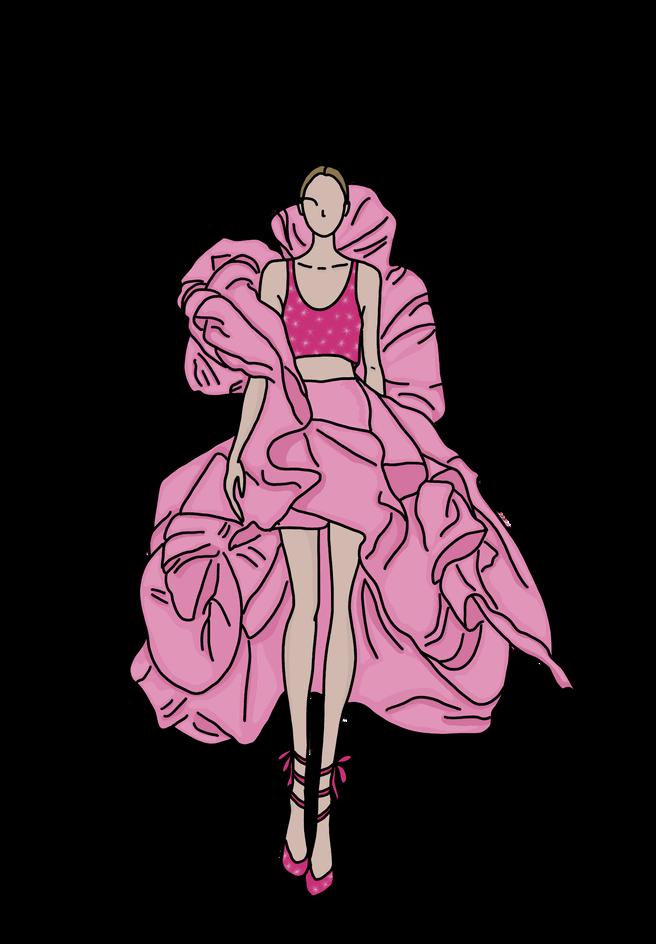 Antes de llegar a la propuesta final, probamos formas, proporciones, texturas y telas con el objetivo de crear una colección que pueda representar a Summer y todo lo que la hace ella. Todos los elementos del figurín modifican la percepción de la prenda y su relación con el cuerpo. El ejercicio funcionó como un espacio de investigación visual.