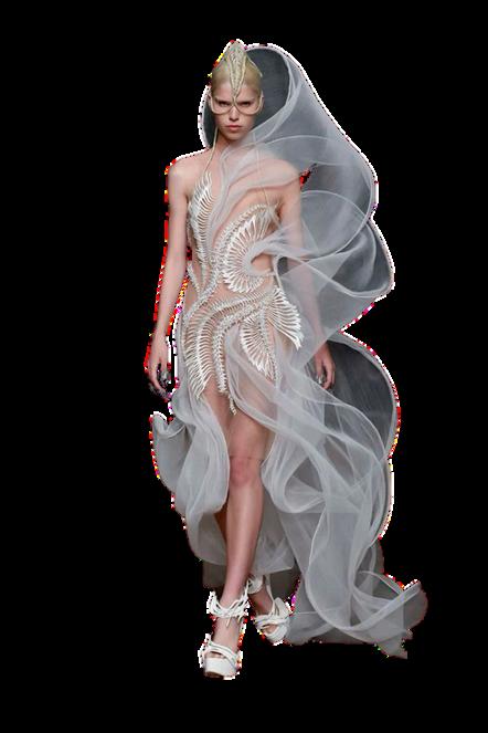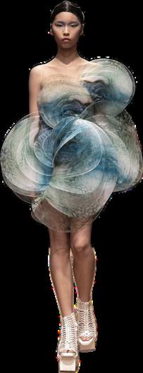 Orgullo silencioso: las piezas etéreas y translúcidas de Van Herpen no buscan deslumbrar desde el exceso, sino desde la precisión y la sutileza. Representan el orgullo que no grita, sino que se expande en calma, como una forma de honrar las raíces a través de la innovación y la continuidad.
