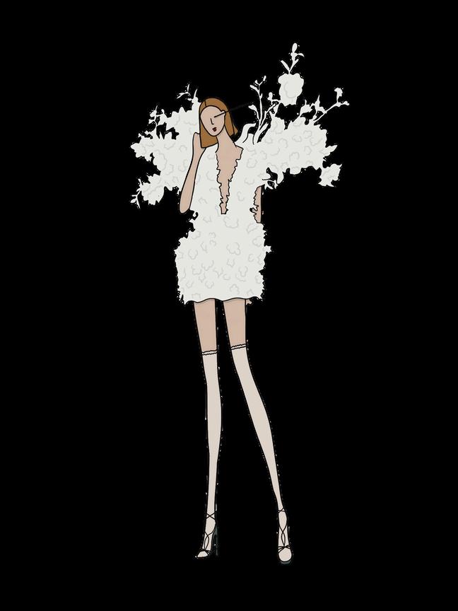 Para el desarrollo de nuestra colección de moda tomamos como referentes a Simone Rocha e Iris van Herpen, dos diseñadoras cuyo trabajo dialoga profundamente con nuestro concepto de herencia y orgullo. De Rocha retomamos la sensibilidad romántica, las siluetas voluminosas y la manera en que reinterpreta elementos tradicionales desde una perspectiva contemporánea. De van Herpen incorporamos su exploración material, la experimentación con formas orgánicas y la sensación de movimiento escultórico. La combinación de estos dos universos estéticos nos permitió construir una propuesta que honra nuestras raíces mientras proyecta una identidad fuerte, actual y llena de carácter.