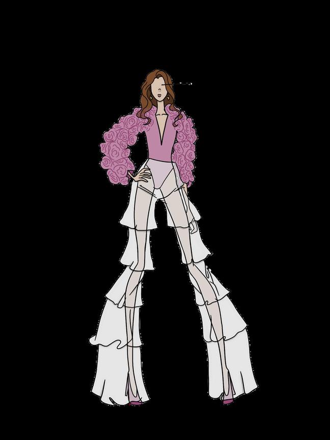 Este look recoge el aroma de las rosas favoritas de su mamá y el eco de la guitarra de su papá, recordándole de dónde viene mientras sigue cantando al mundo.