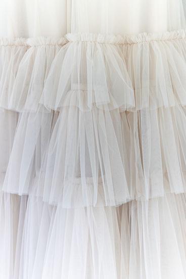 Como la memoria, su ropa está hecha de capas. Transparencias sobre bordados, brillos sobre texturas crudas. Nada es perfecto, pero todo tiene historia.