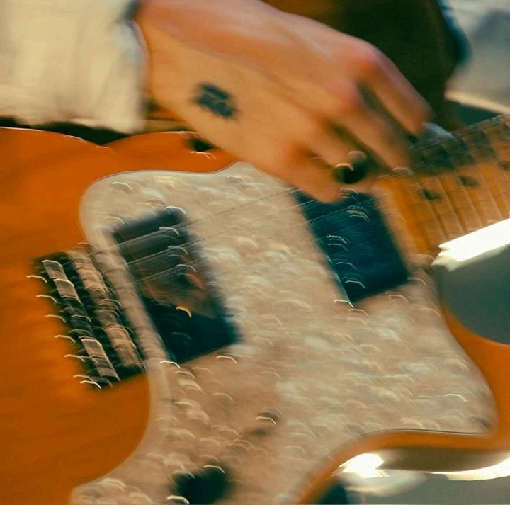 Sucabellosiempreestáunpocodespeinadoéldicequeespartedellooky jamássaledelacasasinsuaccesorioinseparable:laguitarraeléctrica.