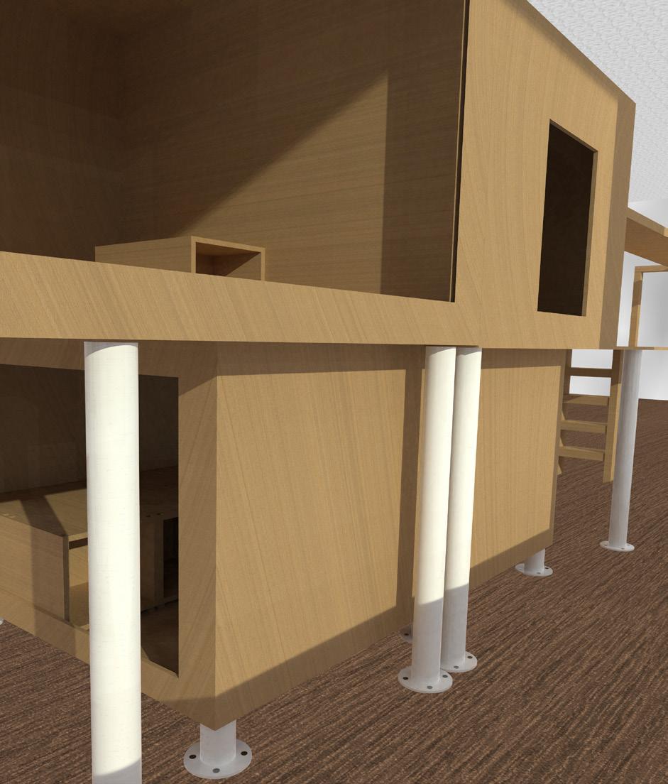La temperatura ideale per dormire è di circa 17 gradi. La box per il sonno è progettata per trovarsi vicino al pavimento e permette una buona circolazione dell’aria grazie ai due lati aperti, mantenendo questa parte della struttura la più fresca e buia.