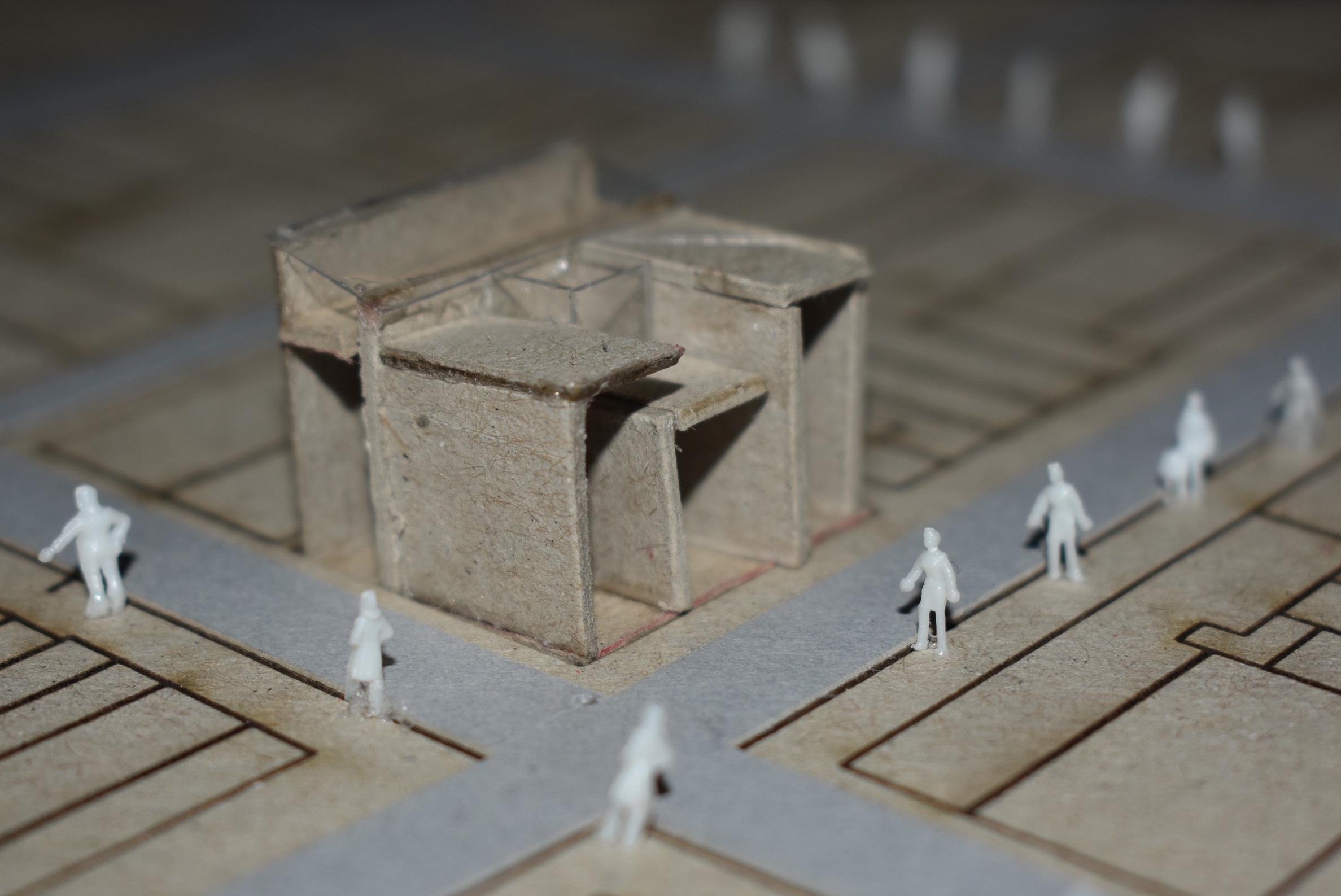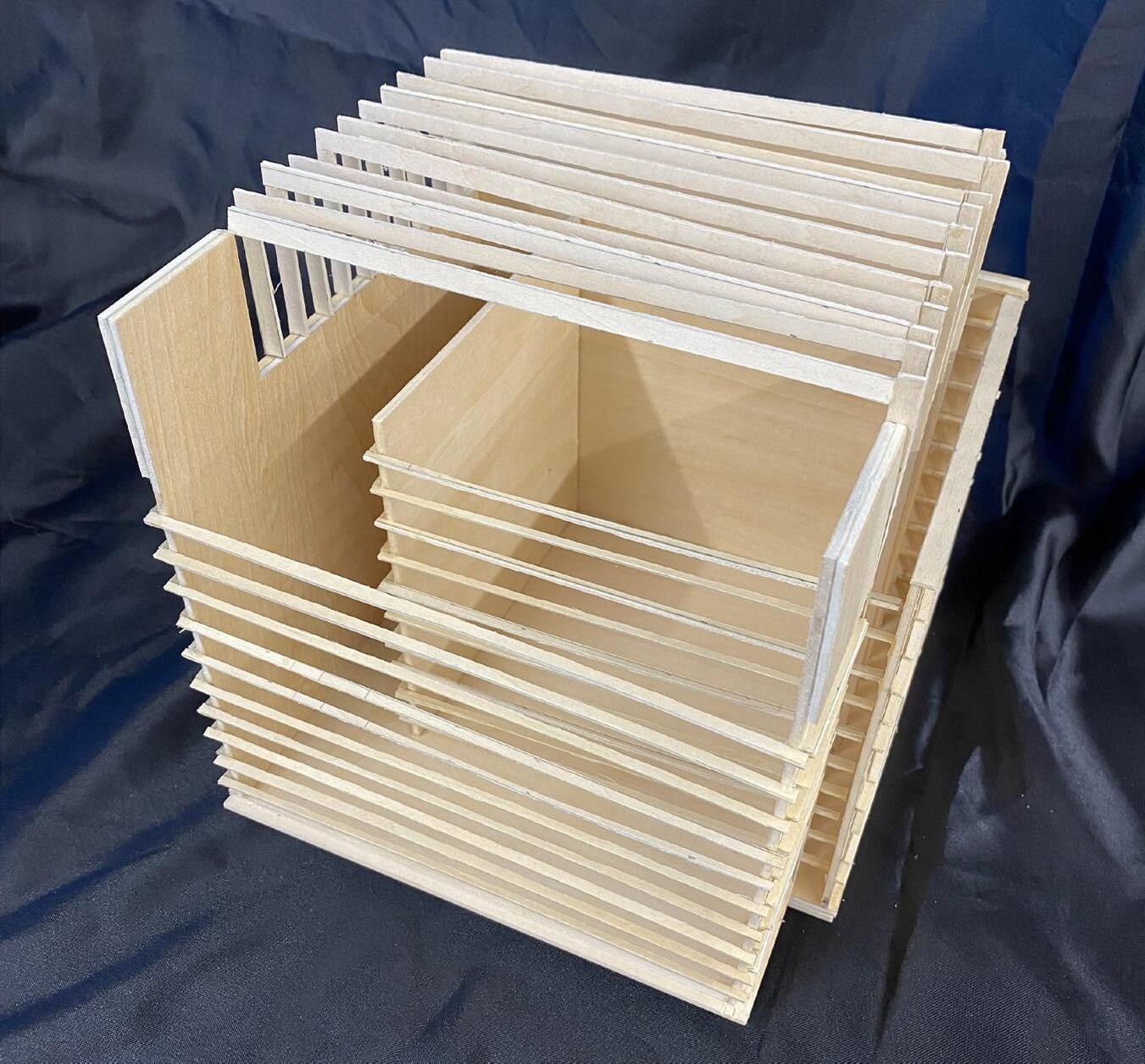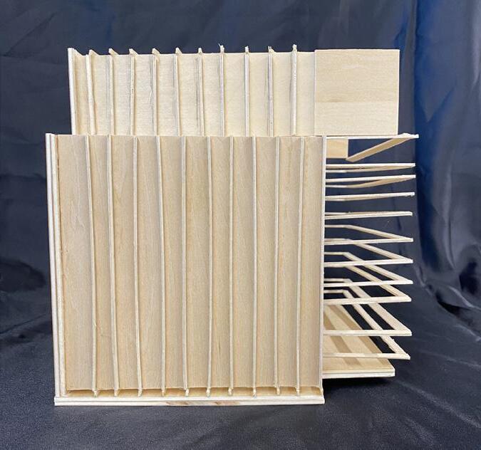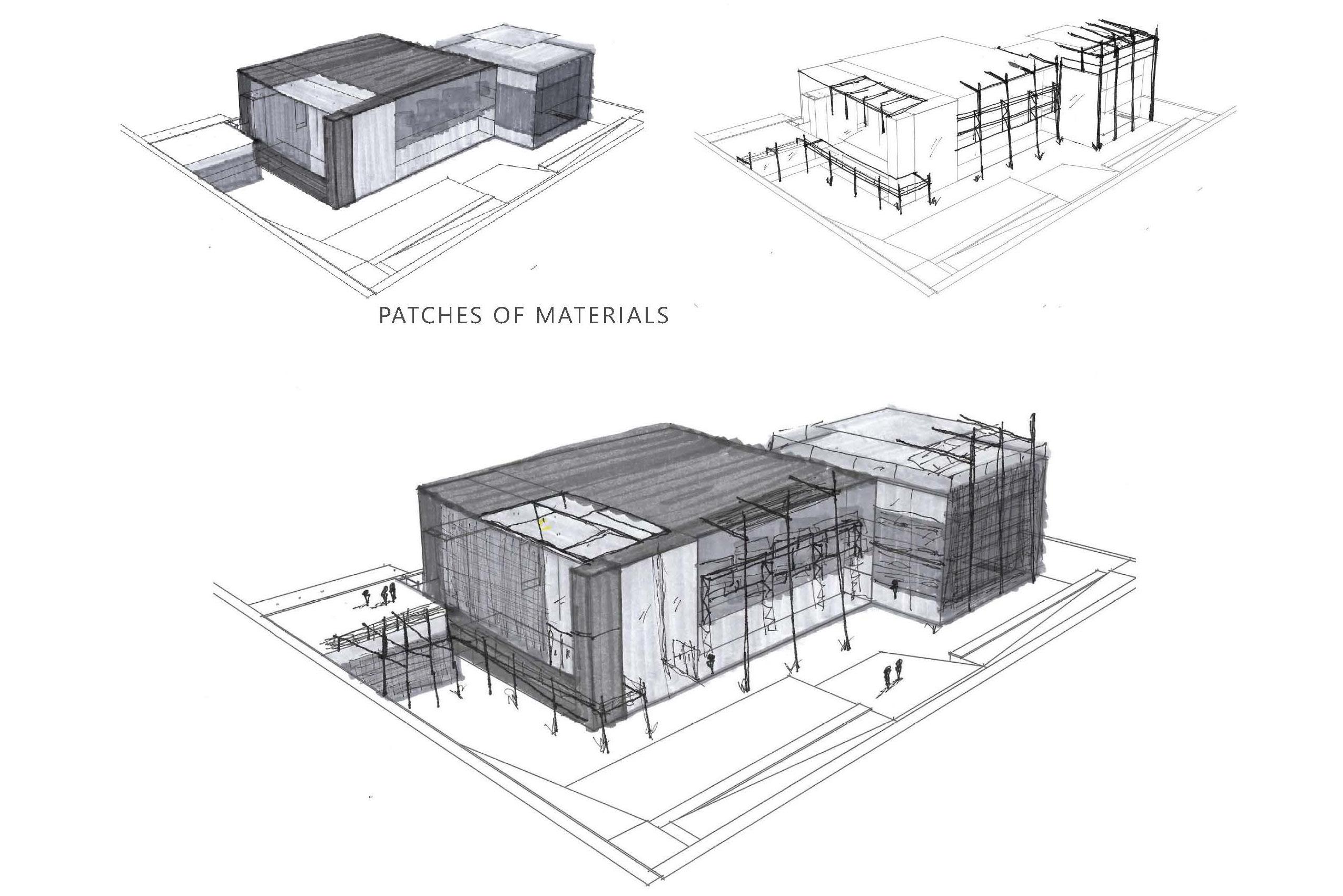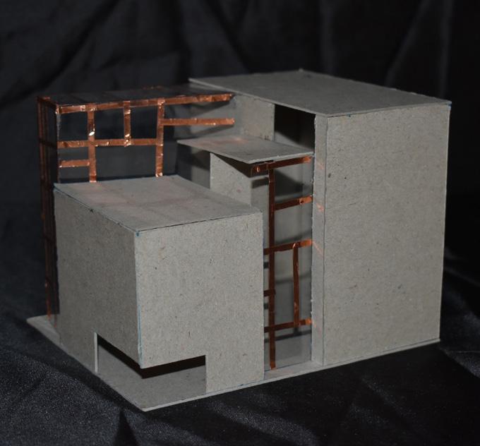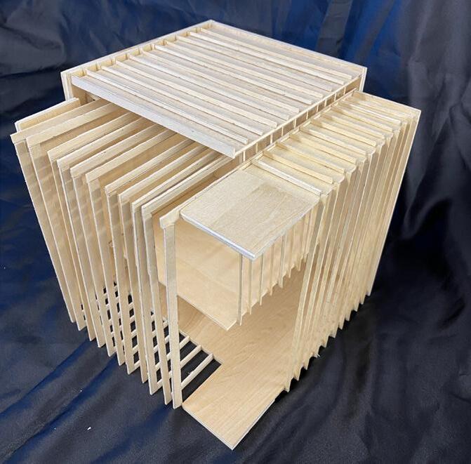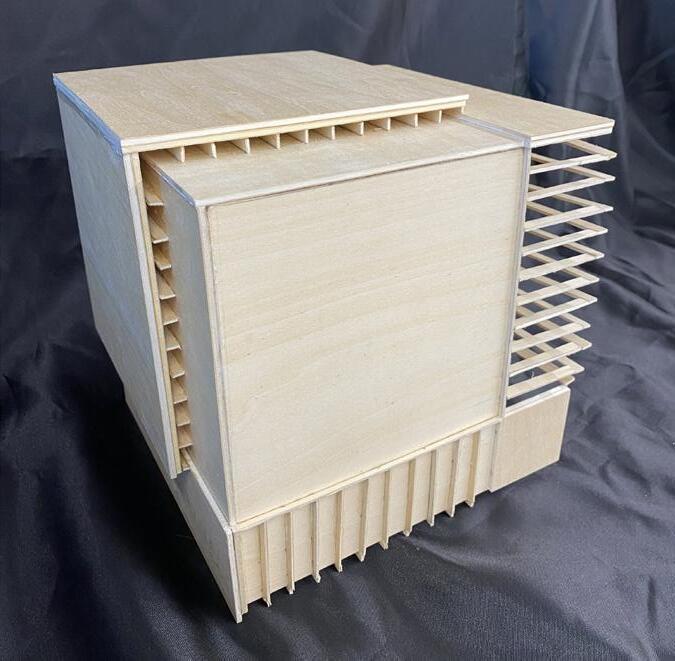 As part of our empathetic study, we heavily researched cancer. Specifically, its growth, manifestation, and/or remission. We selected two verbs that described the process, drew an abstract sequence, and then went on to build a synthesis model of both verbs in action. The abstract result helped inform our architectural language and decisions throughout the design process. The two verbs represented in the synthesis model are “Lurking” and “Materializing”.