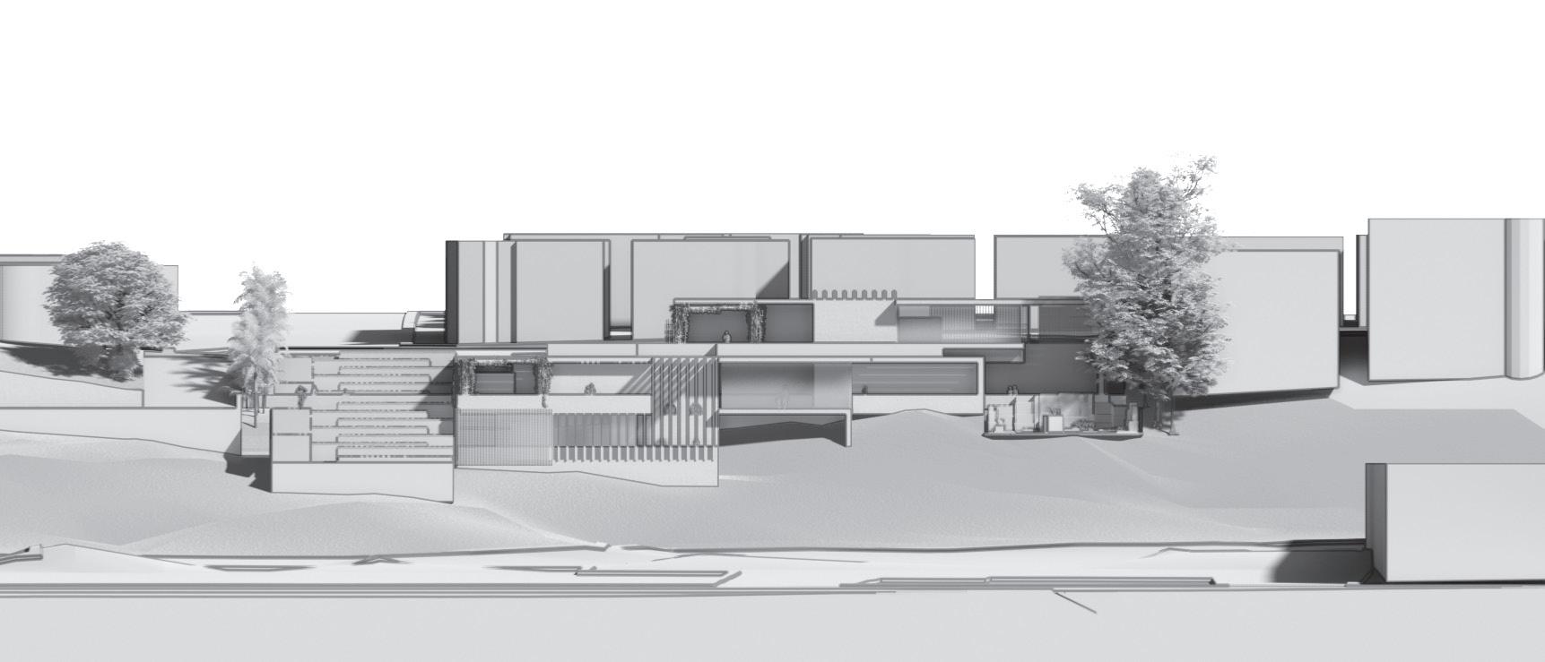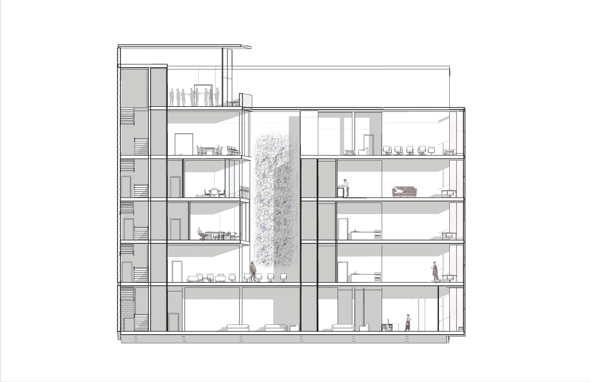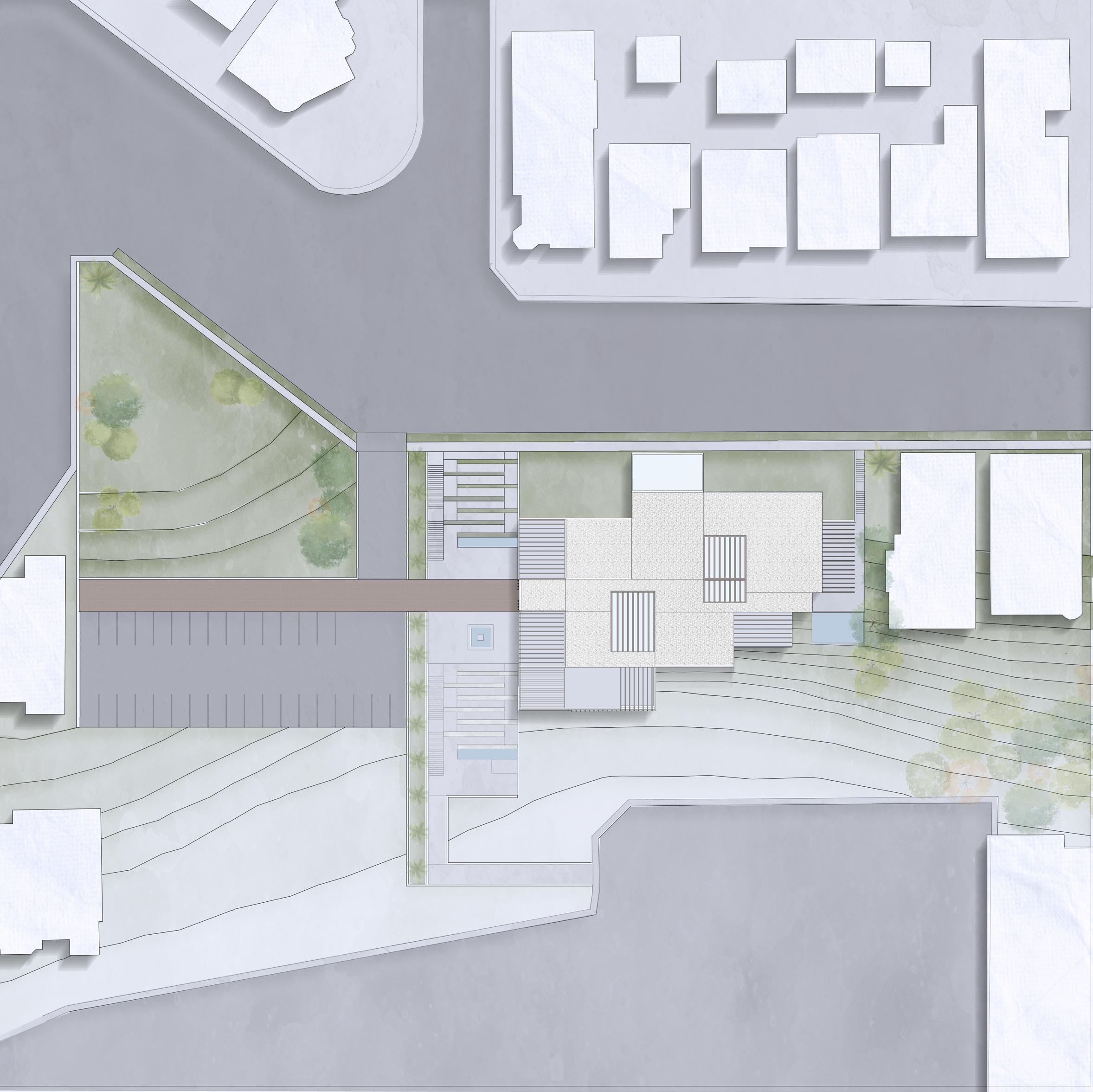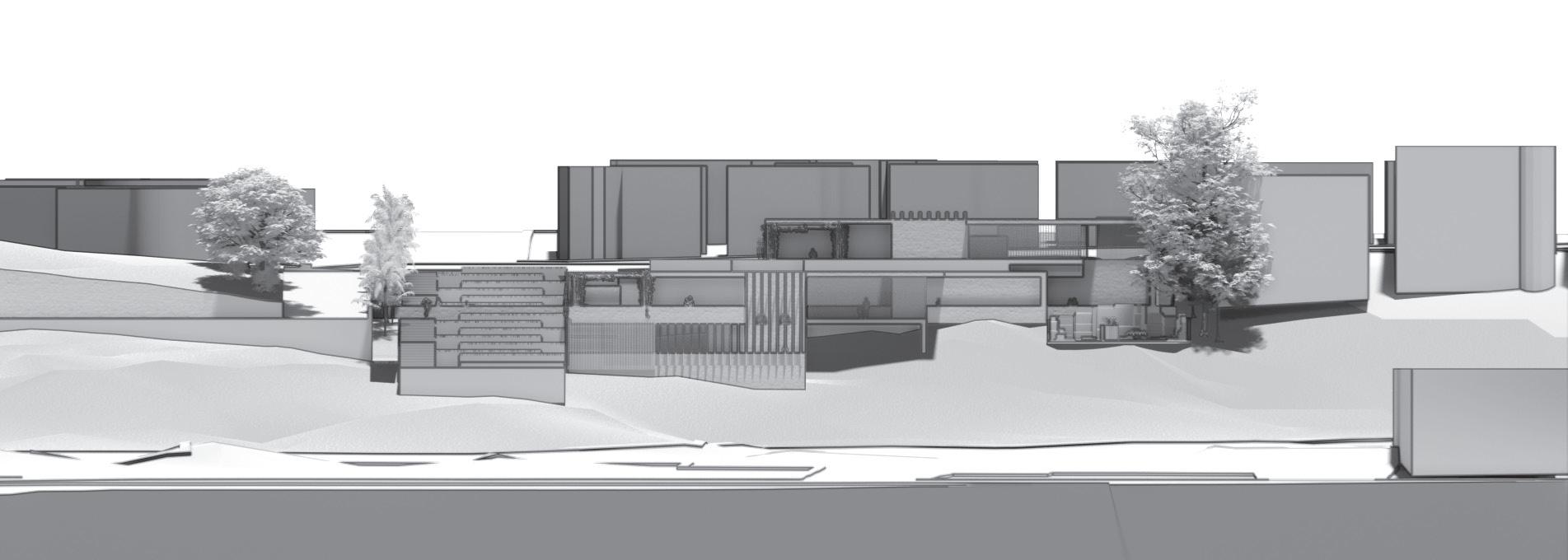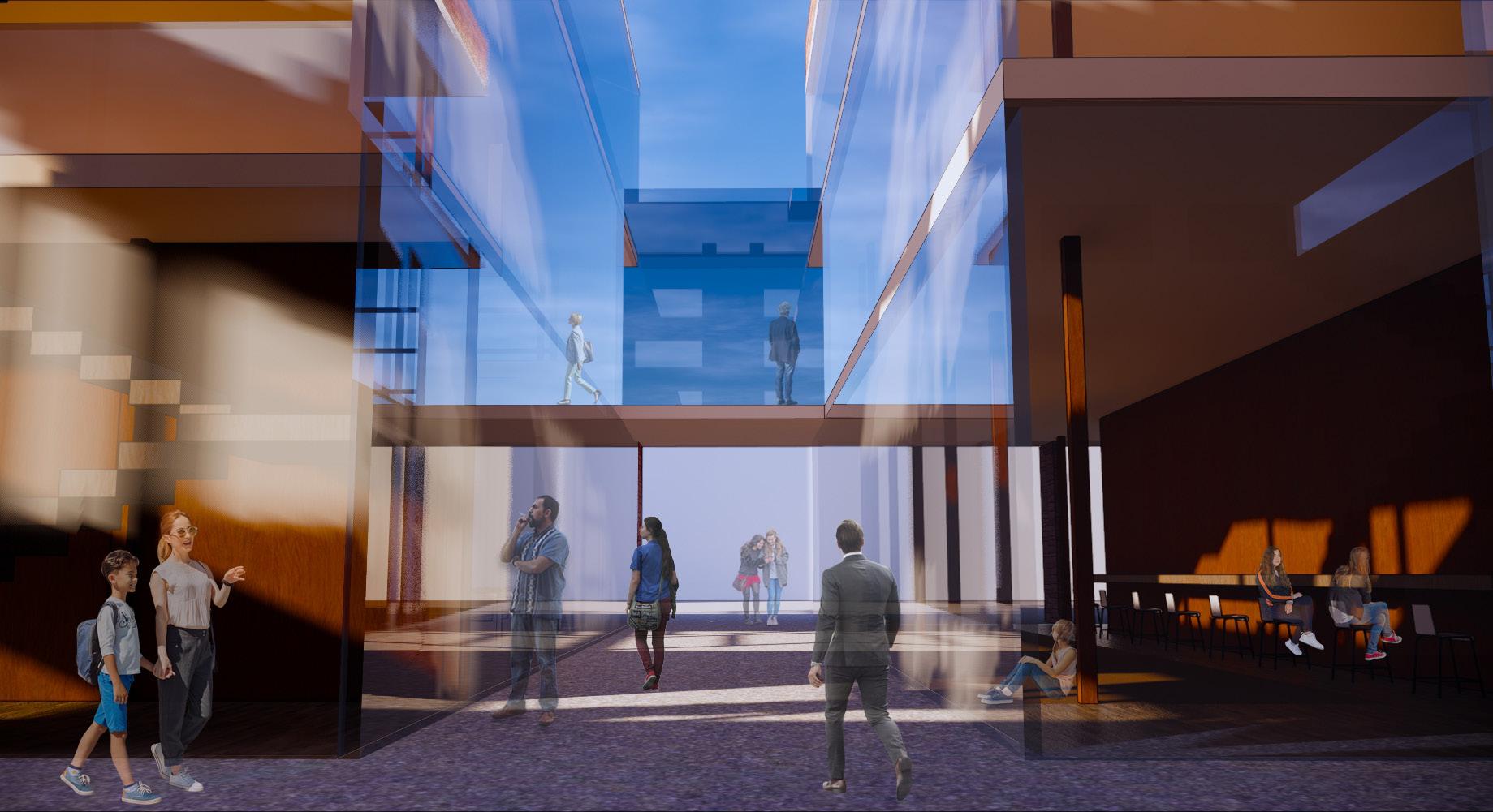 The need for community integration and positive distractions resulted in an intersection both outside on the site and within the building. These intersections allow for serendipitous encounters between people.
