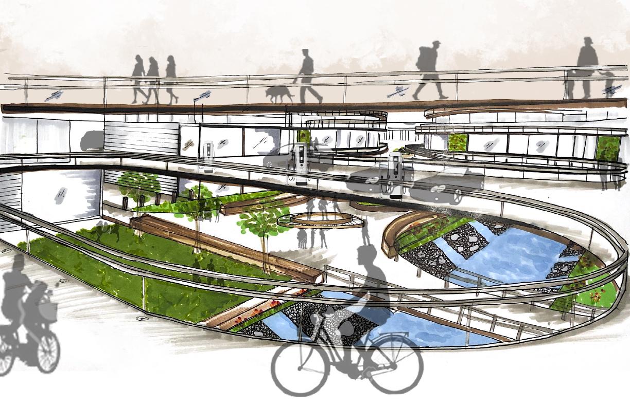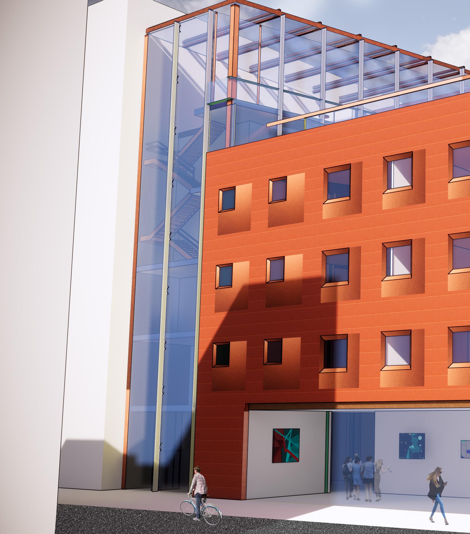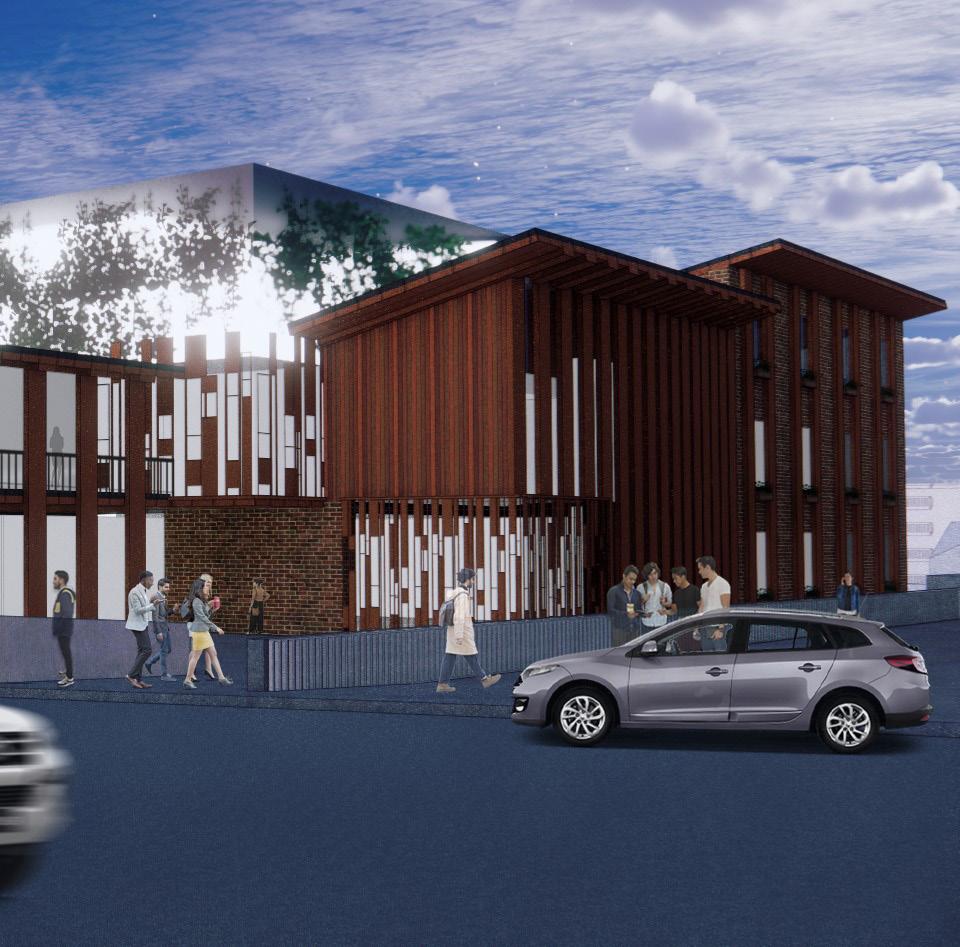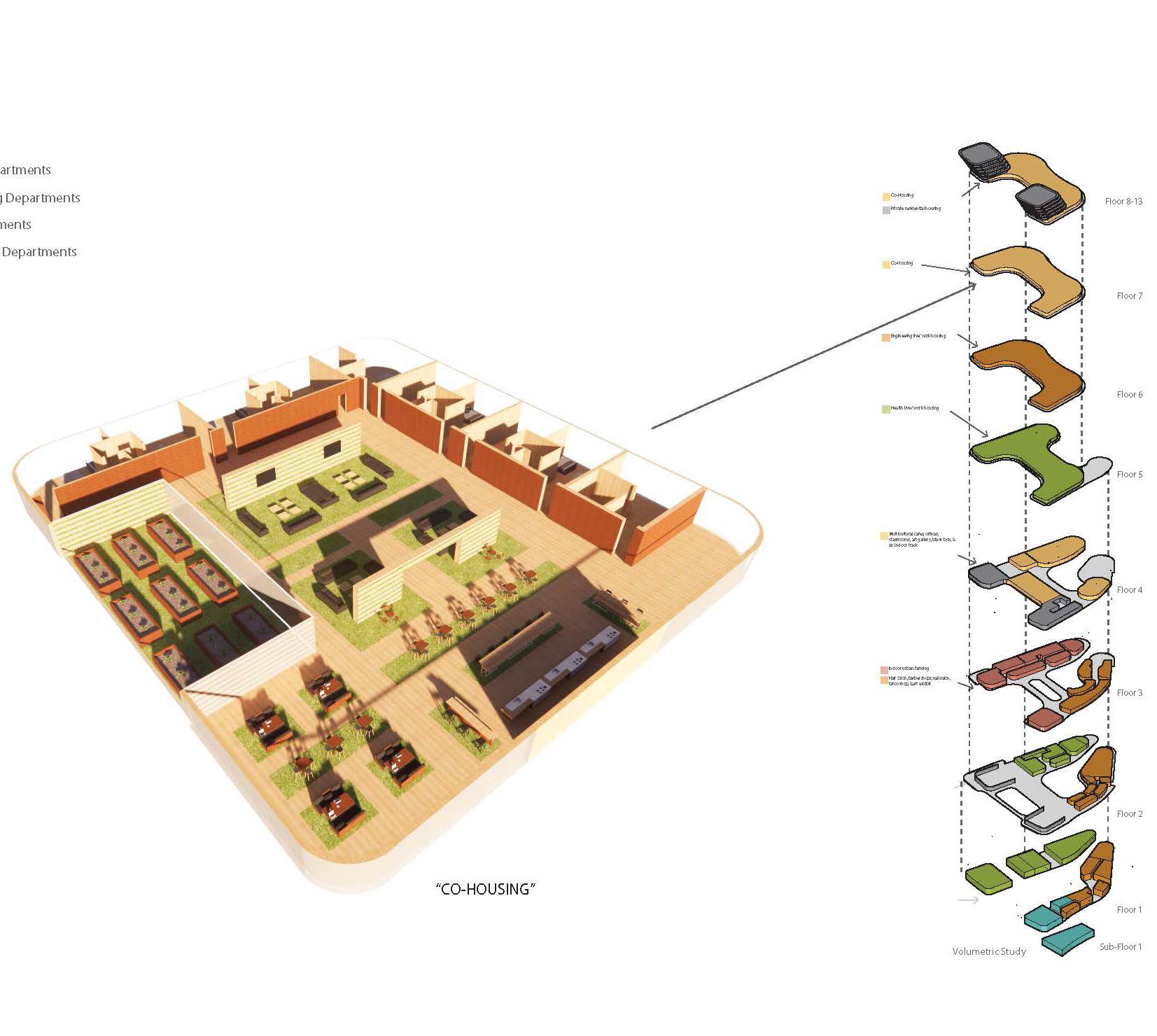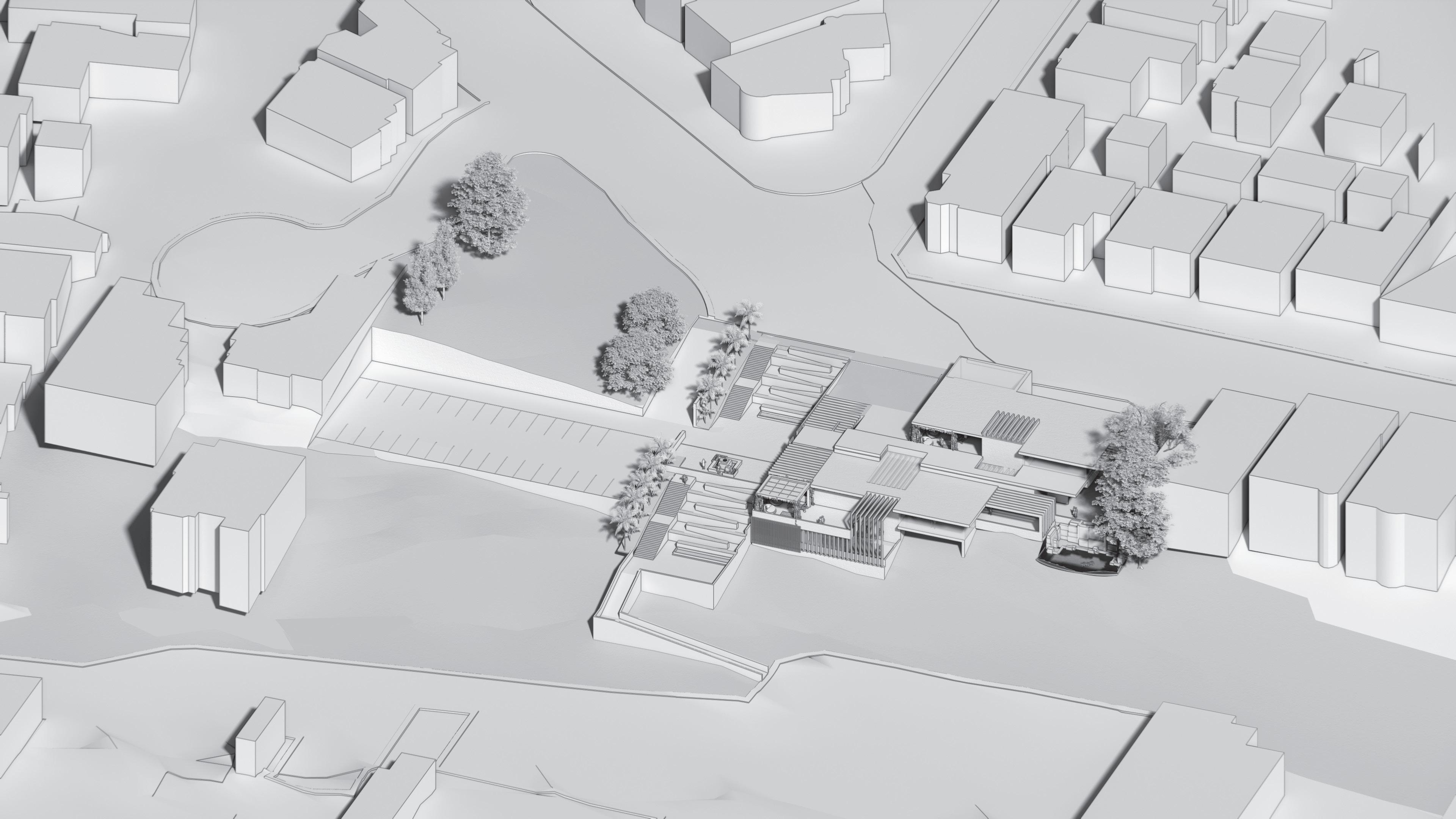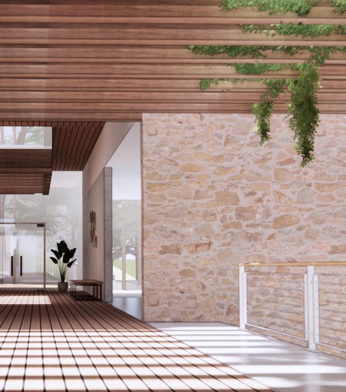 The need for community integration and positive distractions resulted in an intersection both outside on the site and within the building. These intersections allow for serendipitous encounters between people.