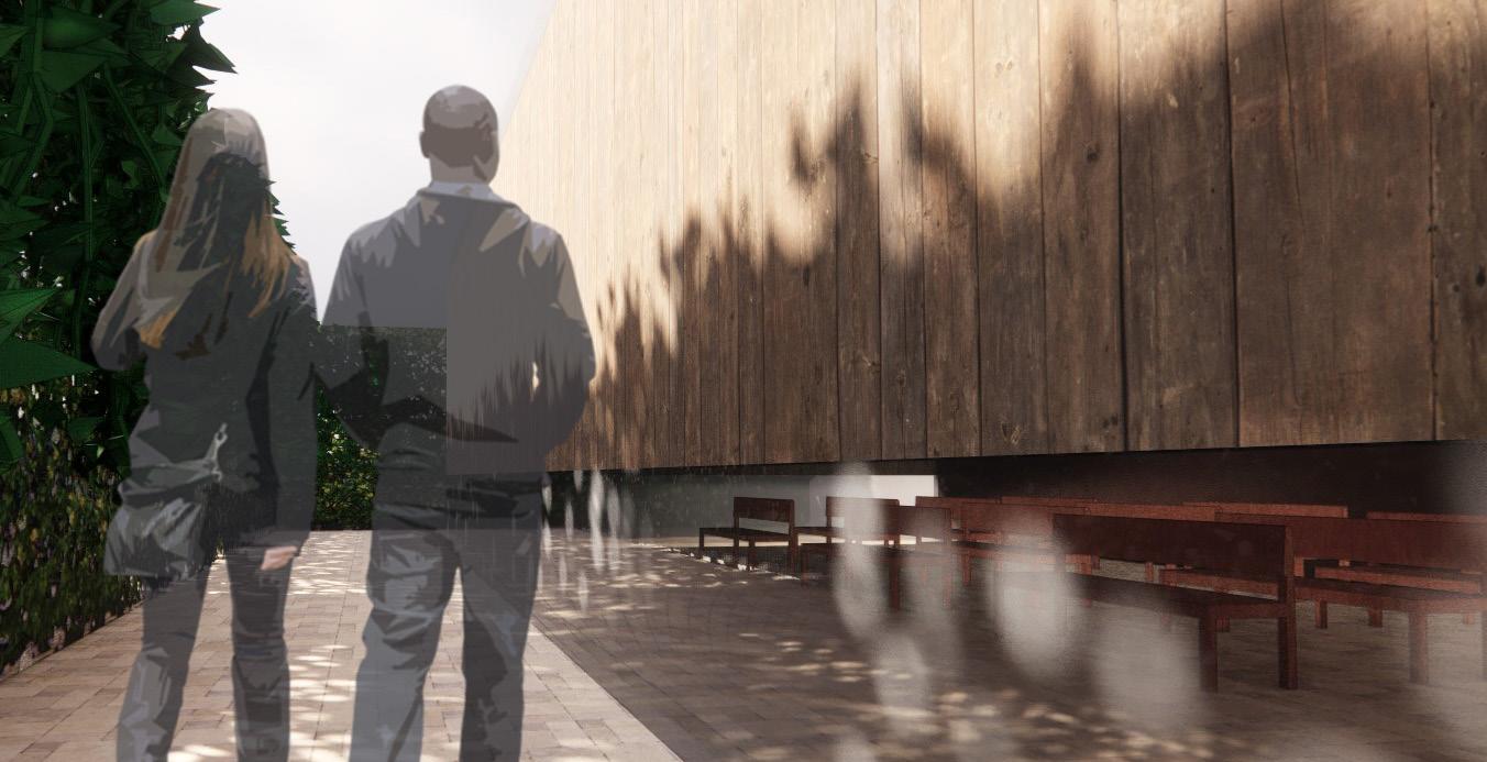 The light in this cahpel was designed in a way that activates different parts of the room through out the day. The foliage in the garden surrounding the chapel atomizes light durring the morning. Reactive glass difuses light and creates an opacity which allows user to foucs on their inmediate surroundings durring noon. Meawhile, light sheds directly on the alter space and draws attention to the cross in the afternoons.