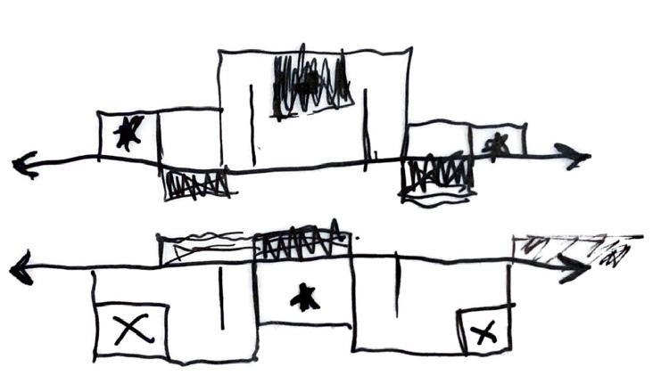 As part of our empathetic study, we heavily researched cancer. Specifically, its growth, manifestation, and/or remission. We selected two verbs that described the process, drew an abstract sequence, and then went on to build a synthesis model of both verbs in action. The abstract result helped inform our architectural language and decisions throughout the design process. The two verbs represented in the synthesis model are “Lurking” and “Materializing”.