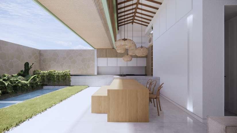 The property already had a small building for the use of services which we wanted to take advantage of and take as a starting point. We created two different areas (private and services) physically united by a roof and visually united by a patio/dining room. Both areas are articulated in a semi-open central space that is the heart of the project.