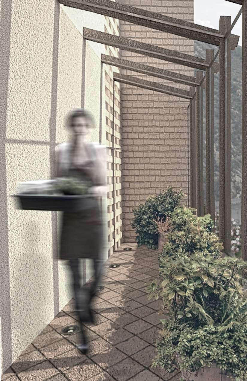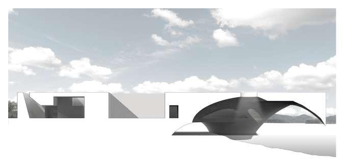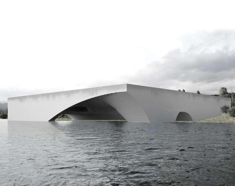 Es precisamente en este umbral donde ocurre la erosión por capilaridad, dando vida a un espacio exterior, pero al mismo tiempo interior, donde encontramos el paso peatonal a lo largo de la orilla del lago y nuestra exposición al aire libre.