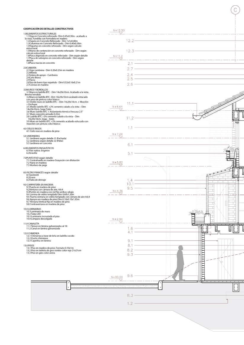 El proyecto conserva su fachada en Tapia pisada (tierra apisonada) y utiliza las técnicas ancestrales de construcción con estructura de madera, BTC (Bloque de Tierra Comprimida) y techo de teja de barro y caña brava. Buscamos desarrollar un programa que se resuelve en torno a dos patios que aportan iluminación y ventilación natural a los espacios interiores.