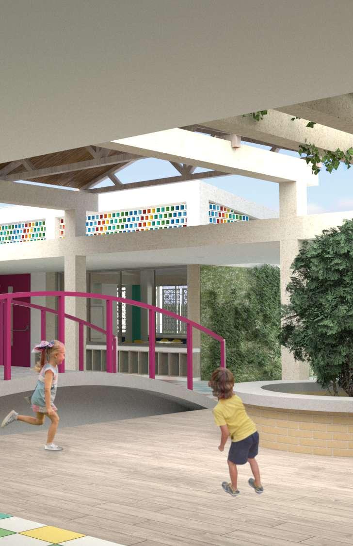 A través de la propuesta, buscamos fomentar la productividad, la creatividad y la relación con la naturaleza. Aportamos la flexibilidad de los espacios tradicionales al cuidado de los niños, agregando lugares para la interacción social y áreas para el cultivo e interacción con la naturaleza.
