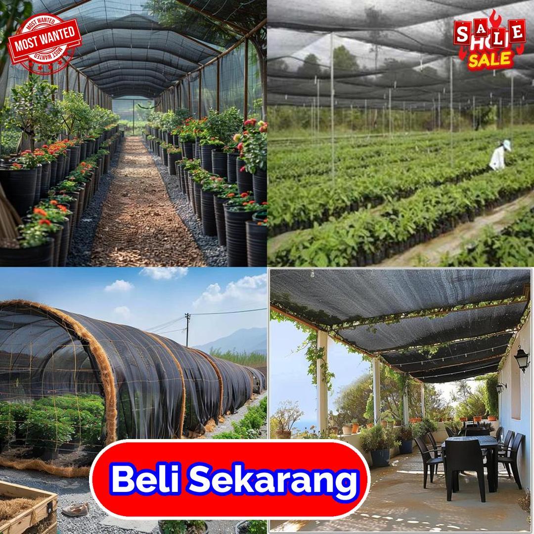 untuk keperluan luar ruangan, produk ini sangat cocok untuk kebun, taman, atau lahan yang terkena sinar matahari langsung. ShadeNet ini membantu mengurangi intensitas cahaya secara signifikan dan menjaga lingkungan tetap sejuk. Bahan fleksibel dan tidak mudah rusak