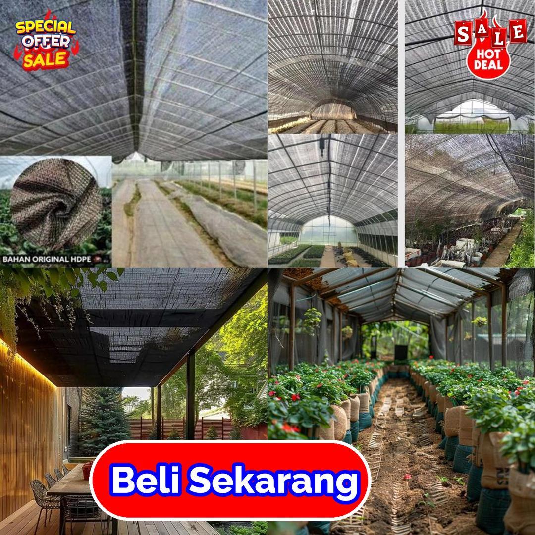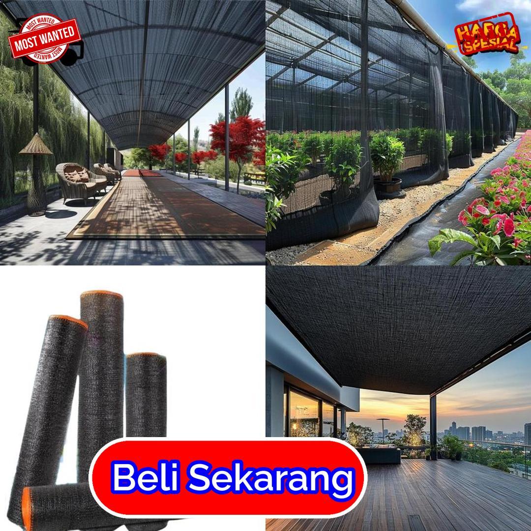 area luar seperti halaman taman dan greenhouse. Produk ini terbuat dari bahan fleksibel yang kuat dan tahan terhadap sinar matahari maupun hujan. Jaring ini membantu menciptakan keteduhan sejuk di bawah sinar matahari langsung tanpa mengganggu sirkulasi udara alami. Paranet berbentuk gulungan panjang sehingga mudah dibentangkan dan disesuaikan dengan ukuran lahan. Warna hitam netral menjadikan tampilan lebih rapi dan menyatu dengan lingkungan sekitar. Sangat ideal untuk berbagai kebutuhan luar ruangan baik untuk tanaman tempat duduk atau pelindung sekitar kolam. Produk ini memiliki daya tahan jangka panjang dan tidak mudah rusak walau terpapar cuaca ekstrem. Miliki paranet 75% ini sekarang juga untuk kenyamanan dan perlindungan maksimal di area luar Anda.