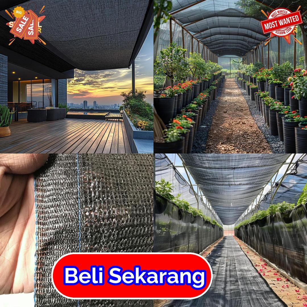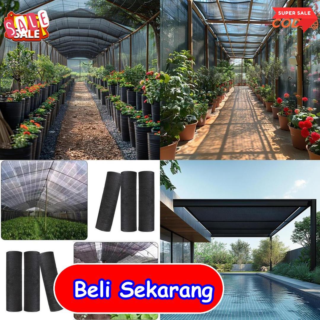 memudahkan pemasangan dan penyesuaian di lokasi terbatas. Warna hitam pada jaring menciptakan tampilan alami dan bersih yang menyatu dengan lingkungan. Cocok digunakan sebagai pelindung tanaman atau peneduh di halaman kecil. Tingkat naungan 90%