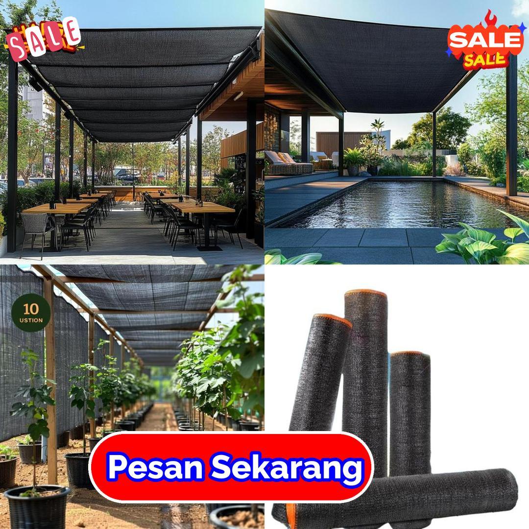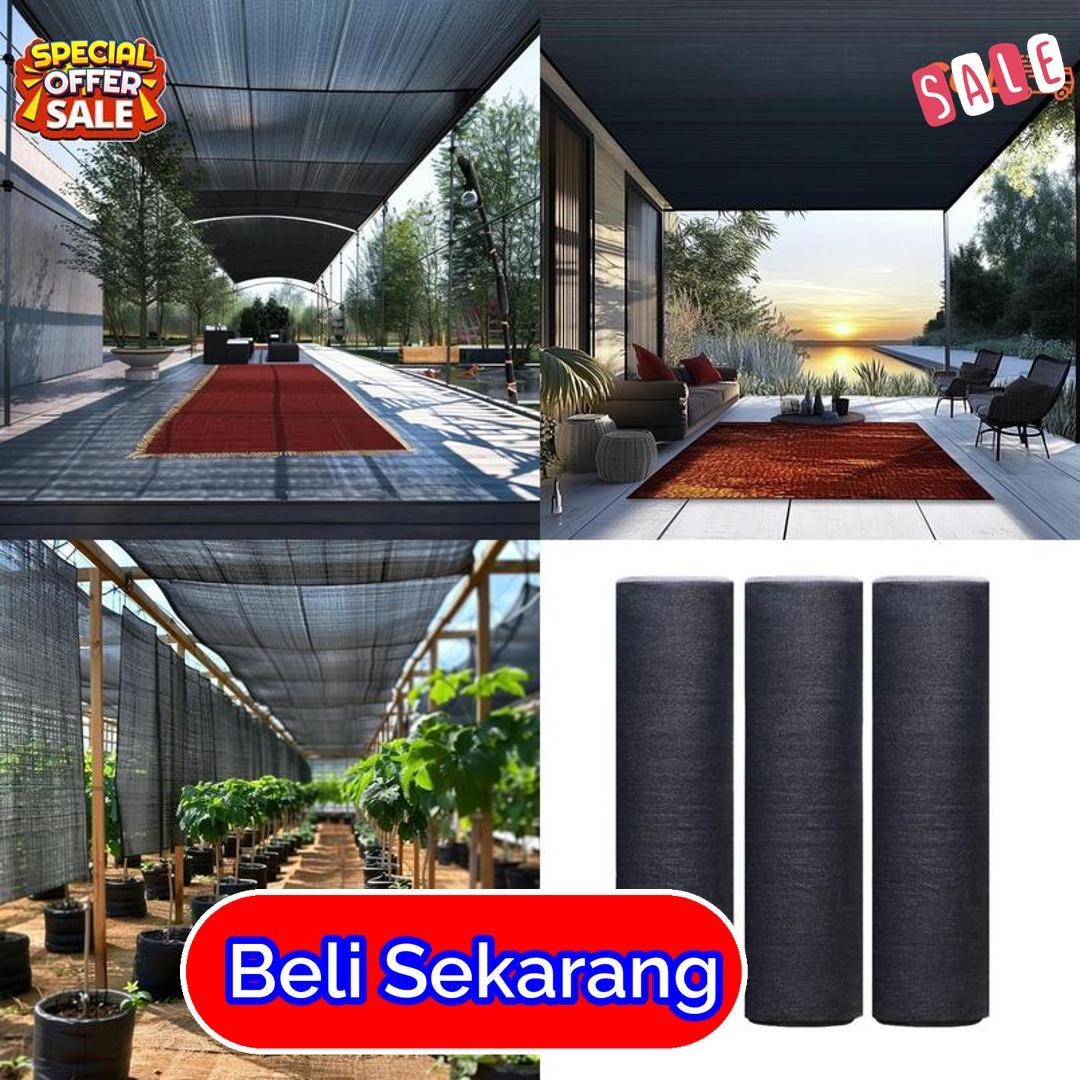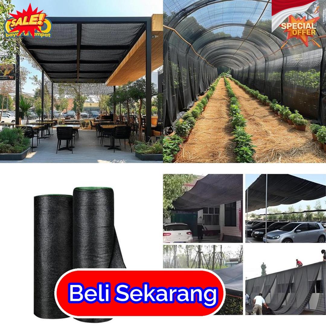 tempat parkir. Paranet ini dibuat dari bahan plastik berkualitas tinggi yang tahan panas dan hujan sehingga awet digunakan dalam jangka panjang. Dengan tingkat naungan tinggi jaring ini sangat efektif mengurangi panas matahari secara maksimal. Produk ini membantu menjaga kelembaban di bawahnya serta membuat area tetap sejuk sepanjang hari. Bentuk gulungan memudahkan pemasangan di berbagai lokasi luas tanpa perlu sambungan tambahan. Warna hitam pada jaring terlihat rapi dan alami saat digunakan di lingkungan luar.