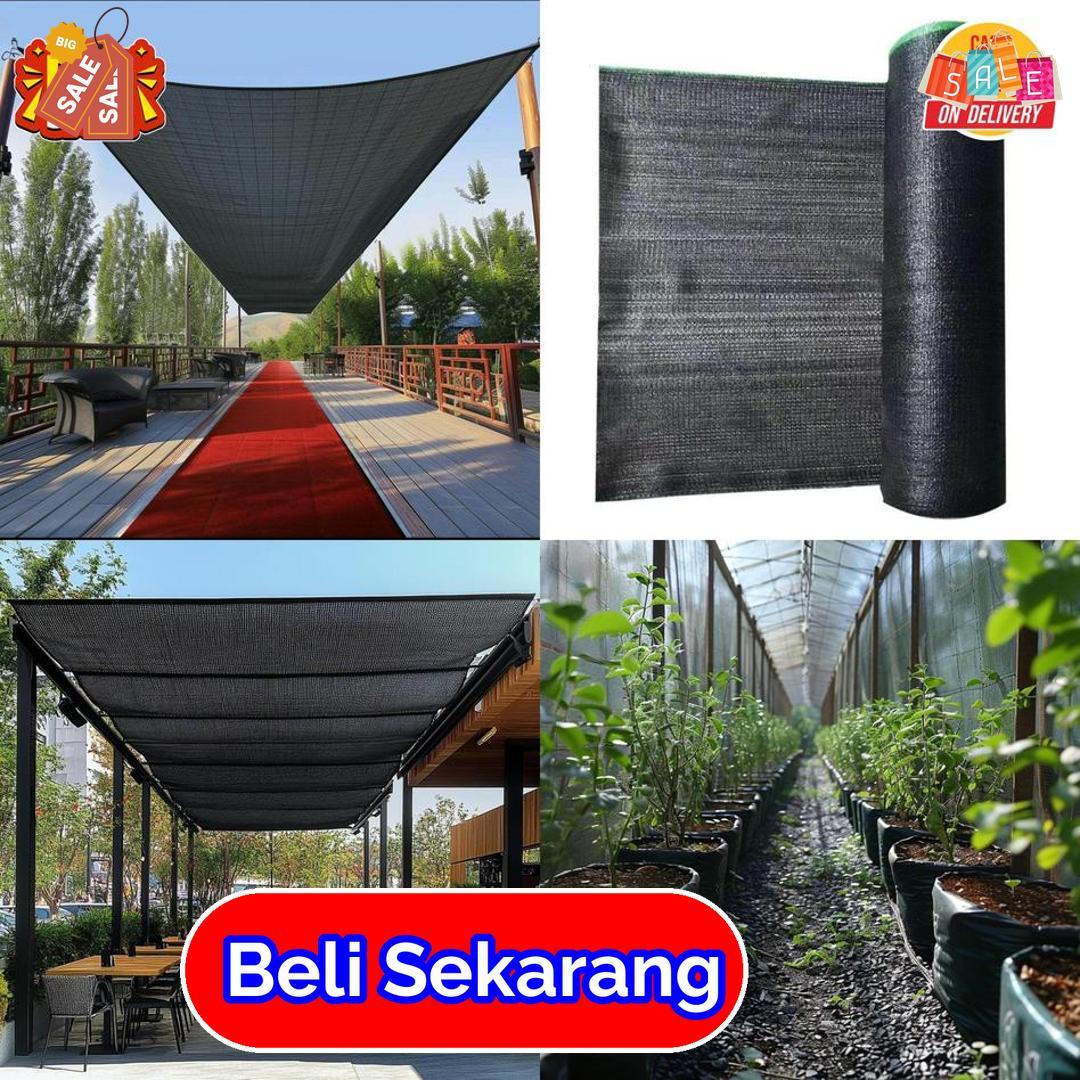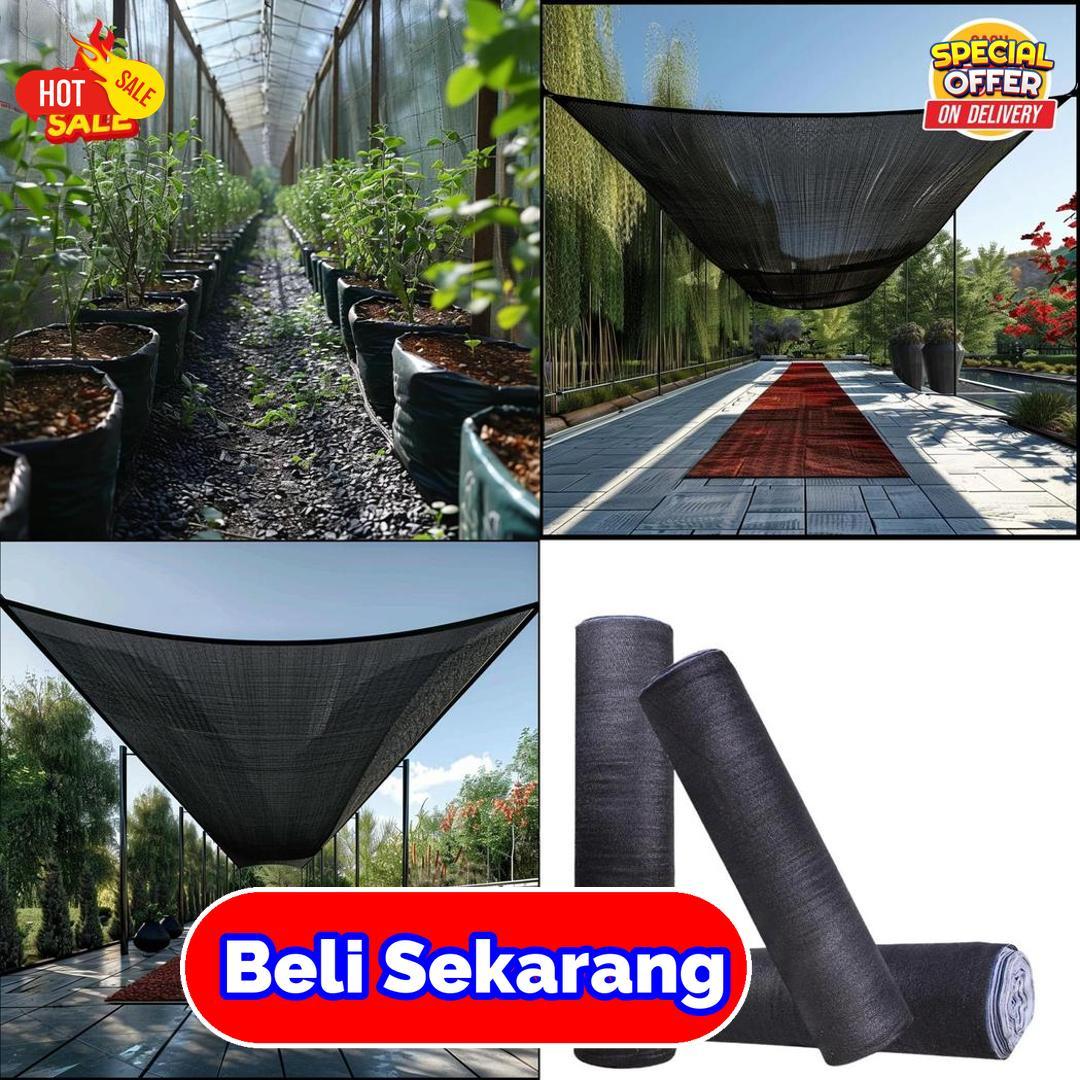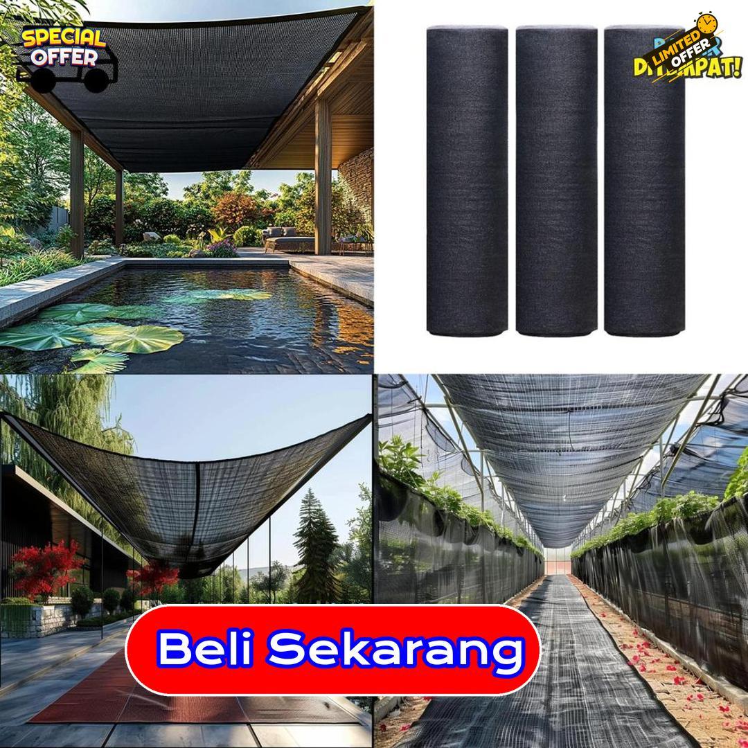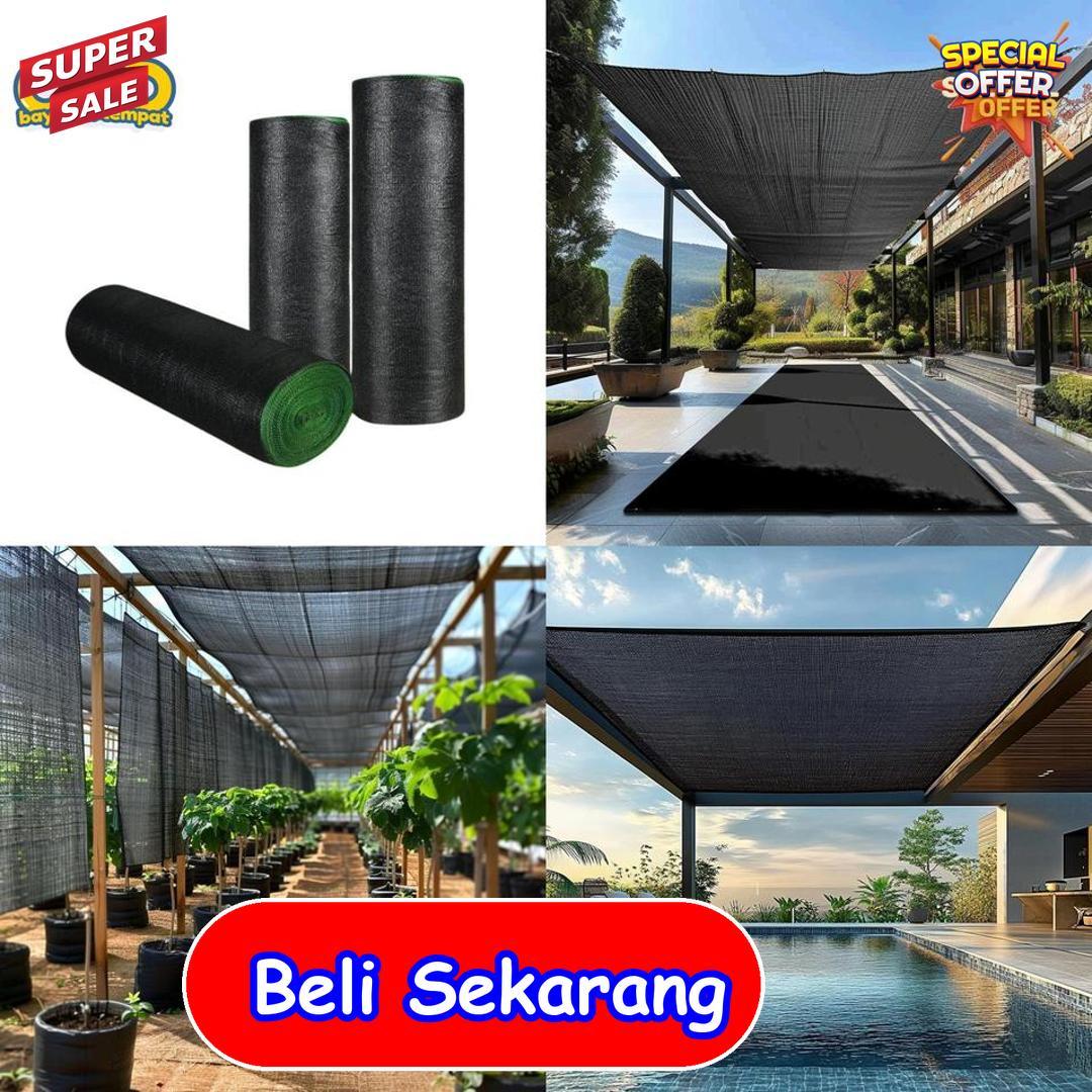 maksimal dari cahaya berlebih tanpa menutup sirkulasi udara. Bahan paranetnya tebal, kuat, dan lentur, mampu bertahan dalam kondisi panas ekstrem. Cocok digunakan di halaman, lahan tanam, atau area terbuka lainnya yang memerlukan keteduhan lebih intens. Warna gelapnya menyerap cahaya dan menjaga suhu tetap nyaman di bawahnya. Bentuk roll mempermudah pemasangan serta penyesuaian sesuai luas permukaan. Gunakan paranet 95% ini untuk menciptakan lingkungan luar yang teduh dan tahan terhadap panas ekstrem.