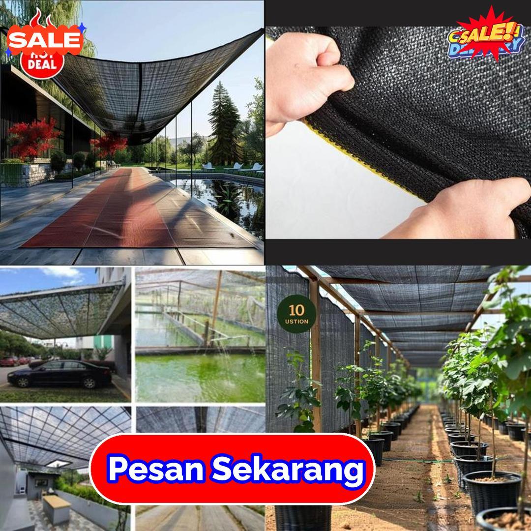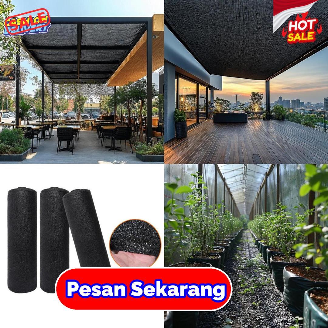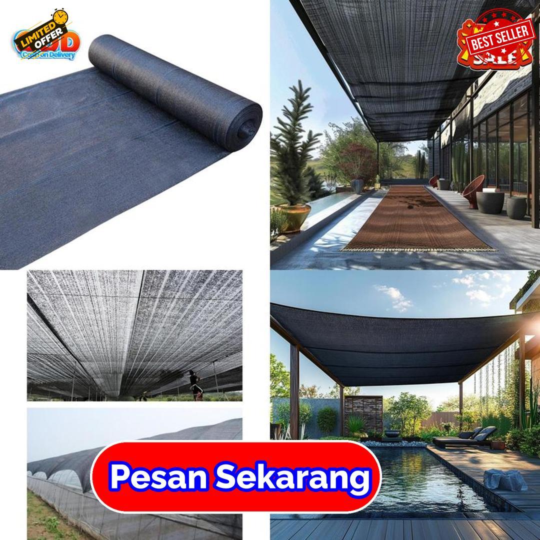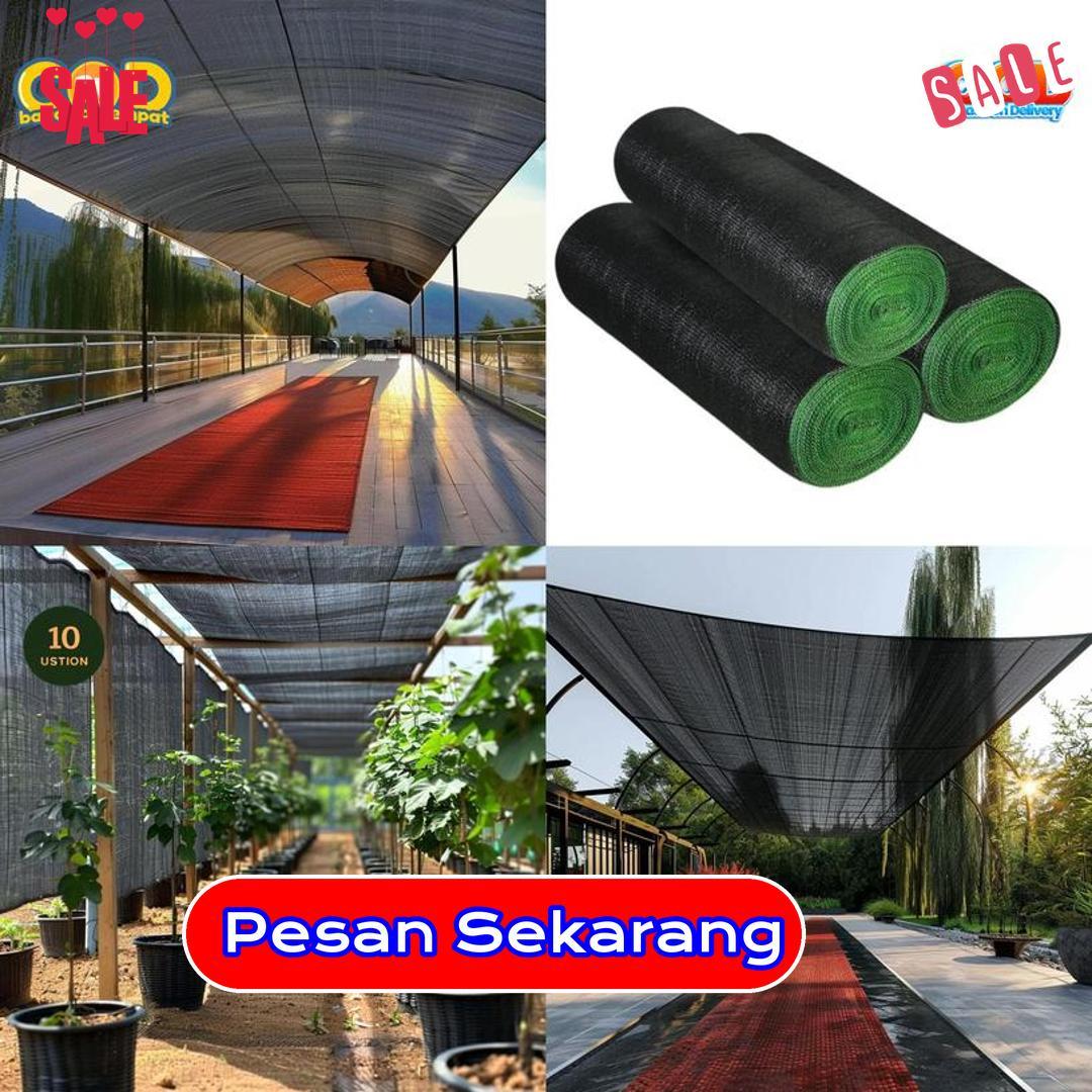 tidak mudah rusak walau digunakan dalam jangka panjang. Cocok dipasang di taman, halaman, lahan pertamanan, atau tempat parkir terbuka. Struktur jaring yang rapat namun tetap berpori menjaga sirkulasi udara tetap baik. Warna hitamnya memberikan efek redup dan tampilan rapi pada area terlindungi. Roll ini memudahkan pemasangan di ruang terbuka yang luas tanpa memerlukan banyak sambungan.
