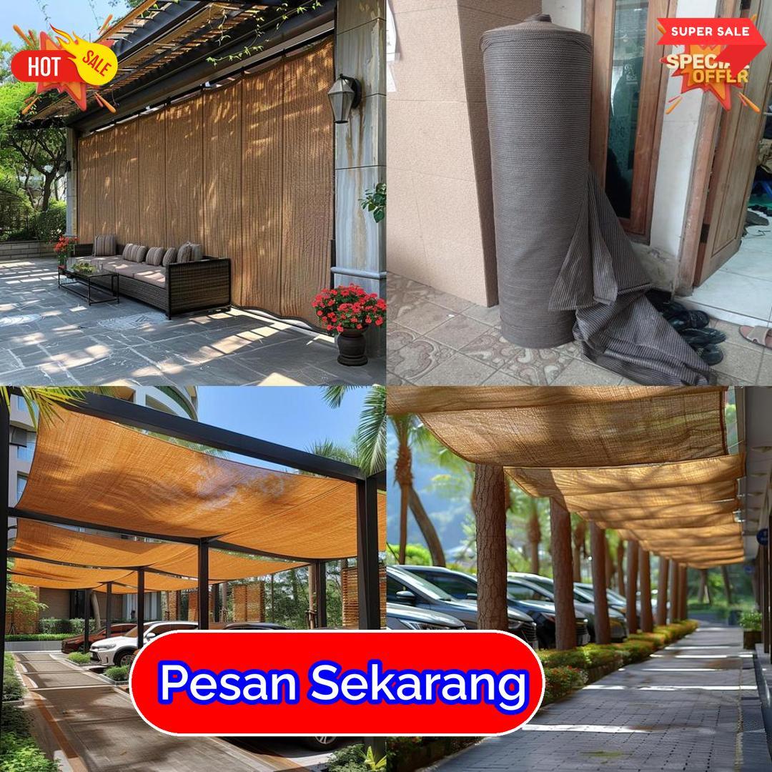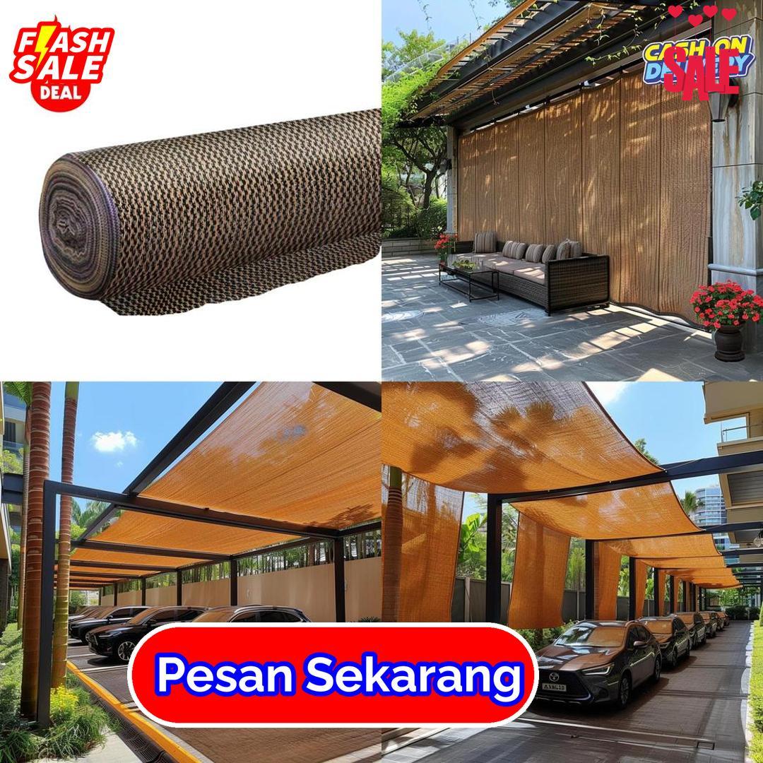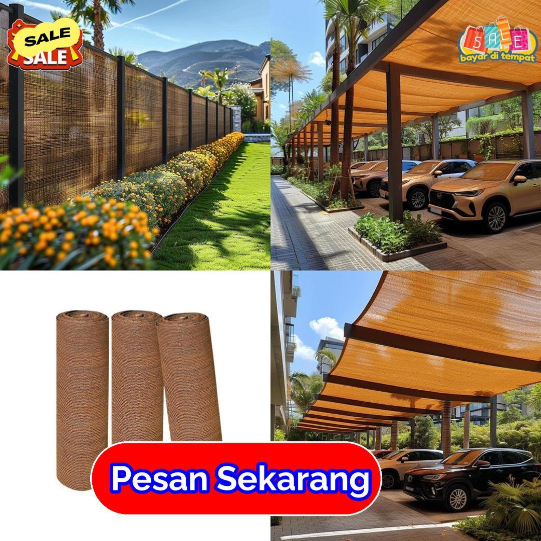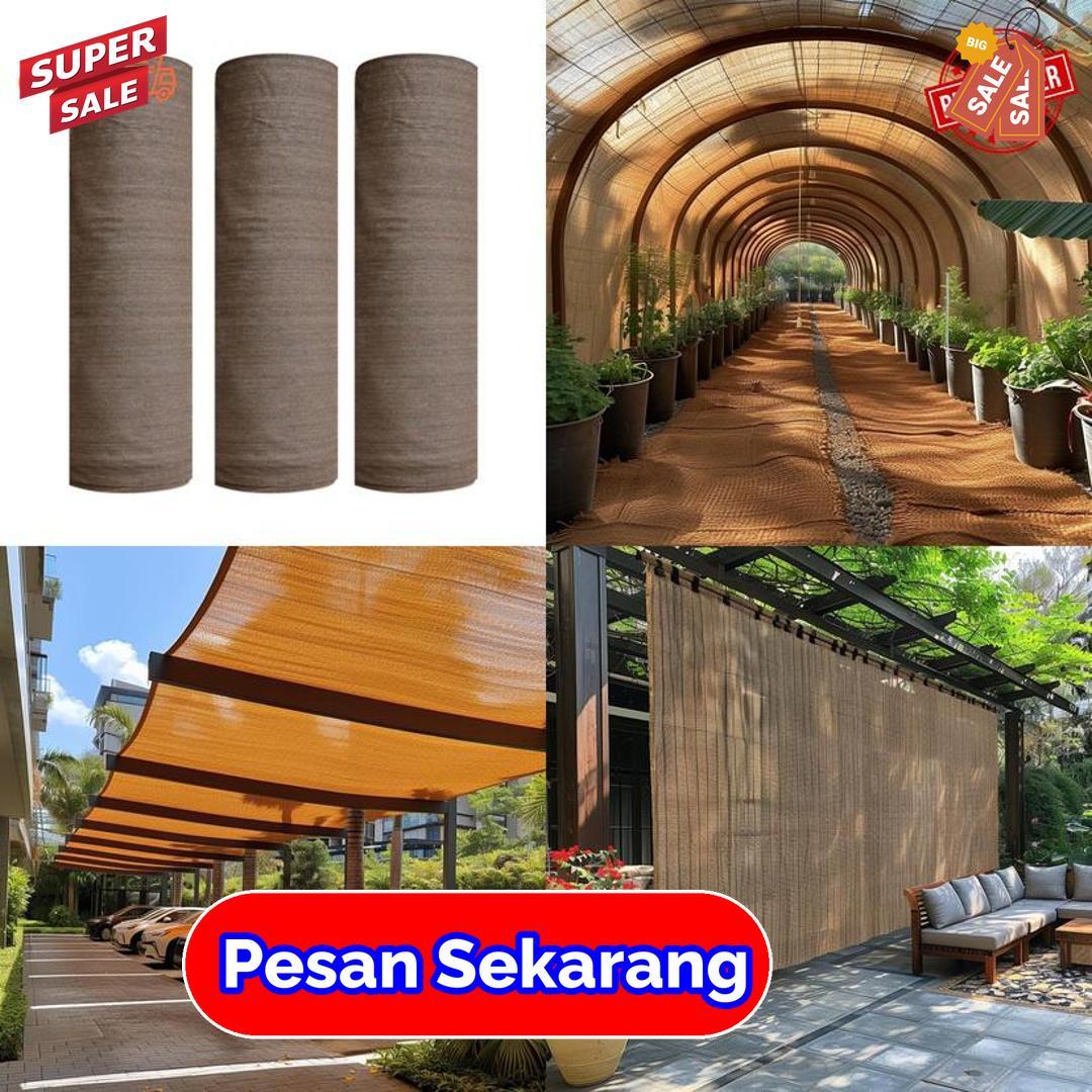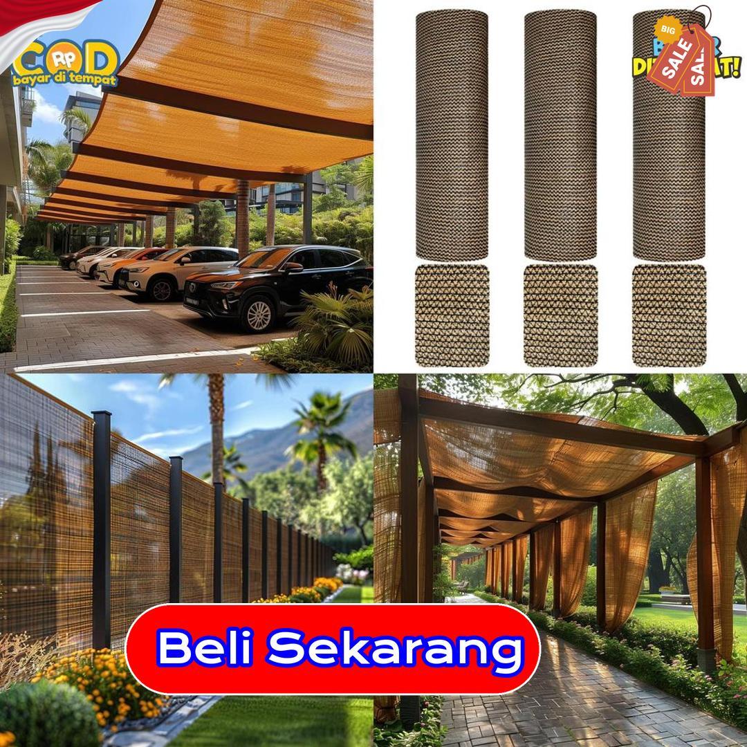 Produk ini hadir dalam gulungan praktis yang mudah dibentangkan dan disesuaikan dengan bentuk lokasi. Warna coklat menampilkan kesan alami dan menyatu dengan elemen luar ruangan. Paranet ini berfungsi mengurangi panas matahari dan menjaga kondisi area tetap