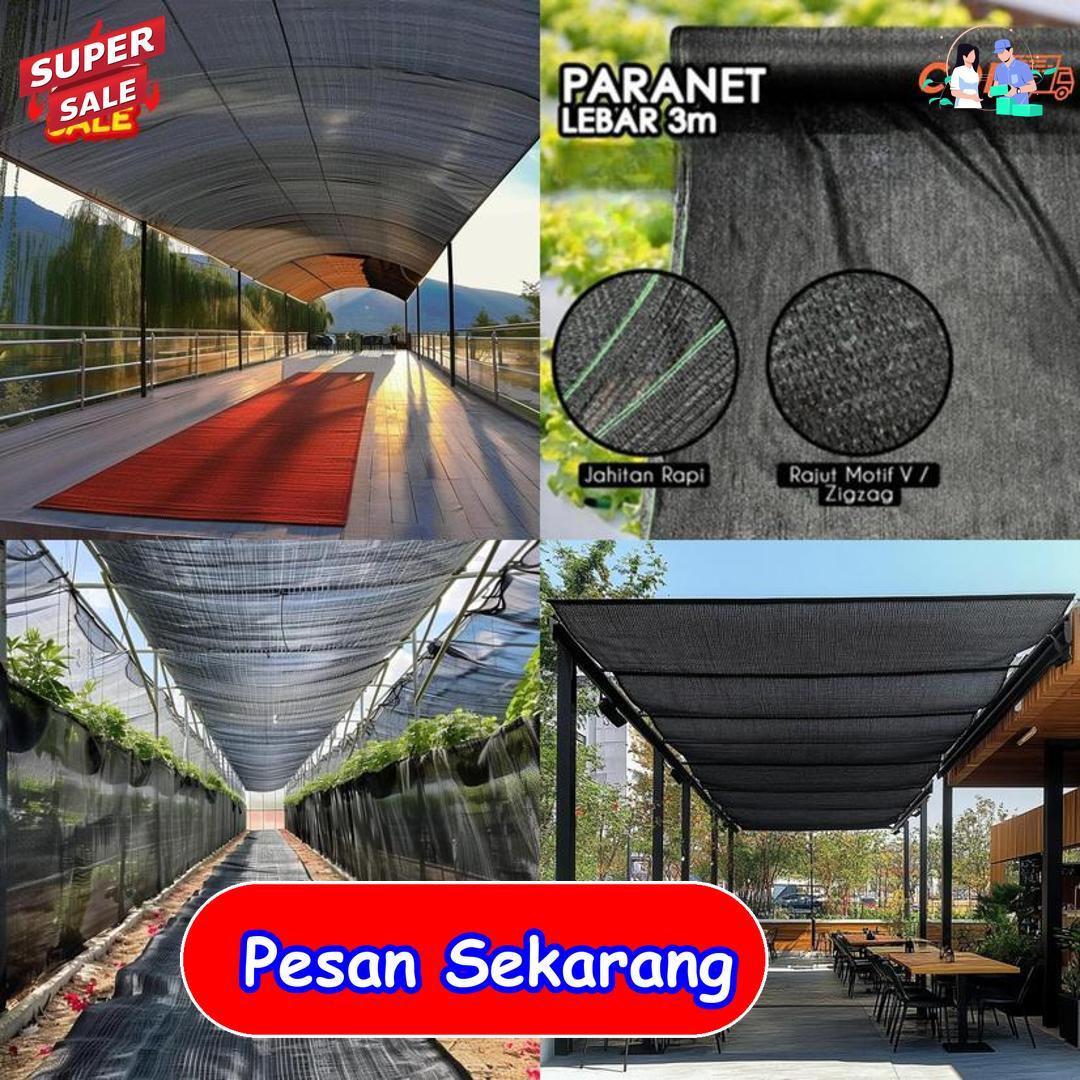 Jaring paranet roll 75% impor dengan ukuran 100 meter x 3 meter ini cocok digunakan untuk melindungi area terbuka dari terik matahari.