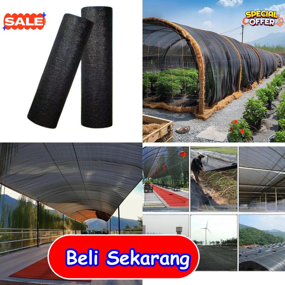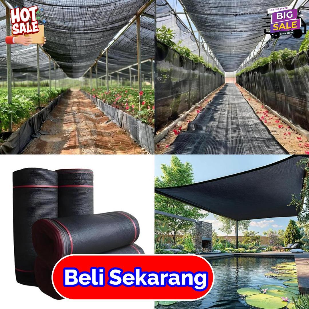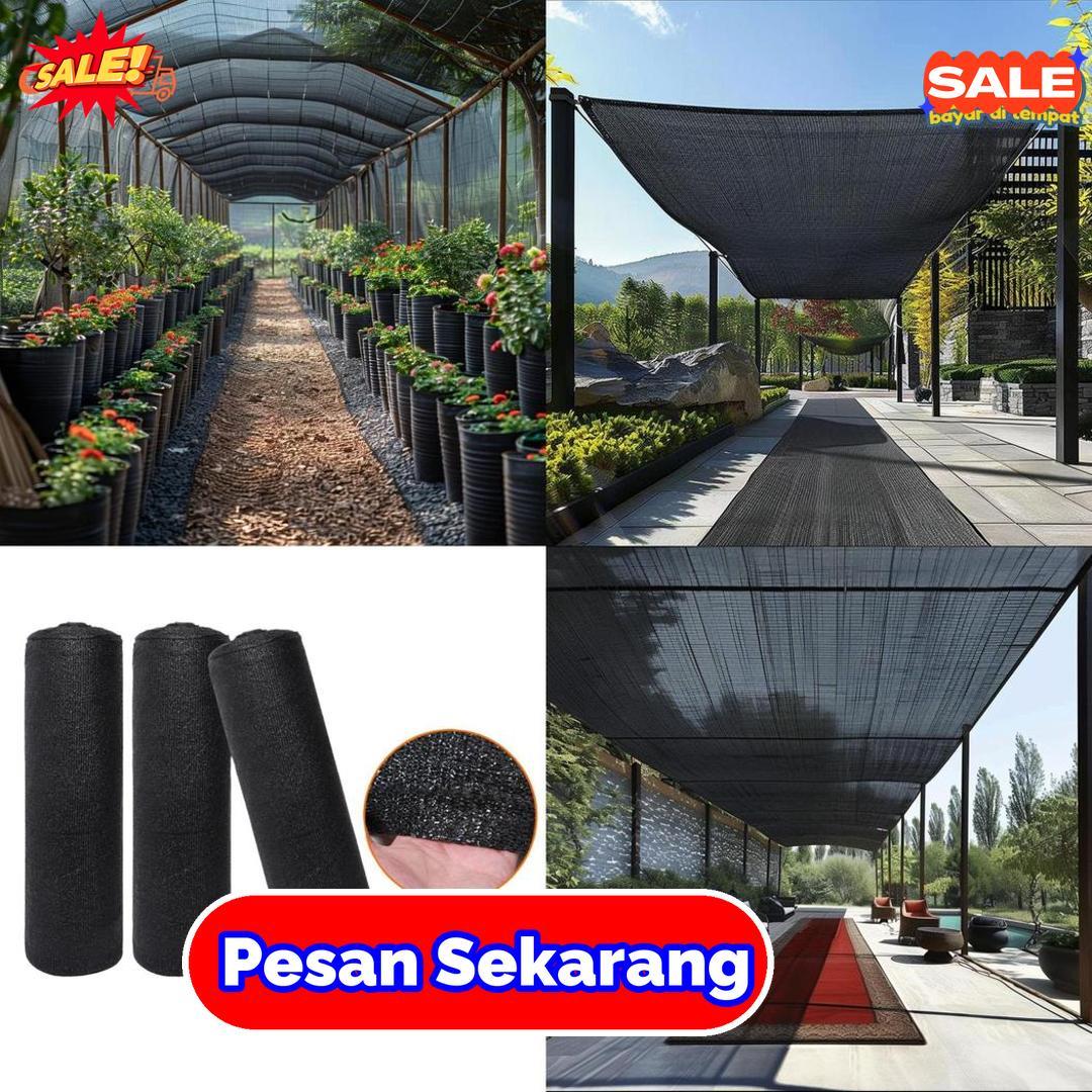 Jaring paranet ini memiliki tingkat naungan 75% dan ukuran panjang 100 meter dengan lebar 3 meter, cocok untuk halaman luas atau area