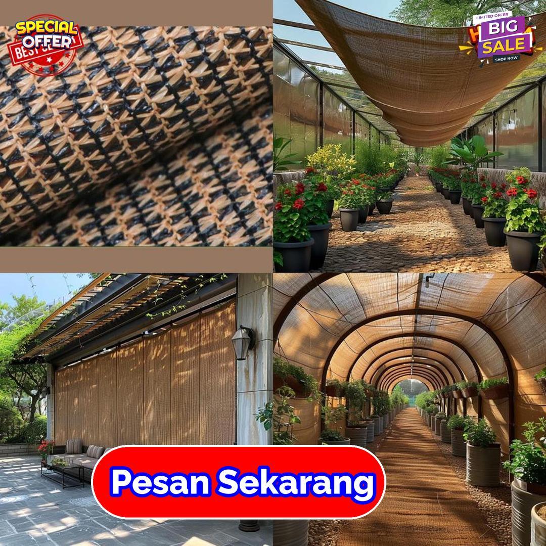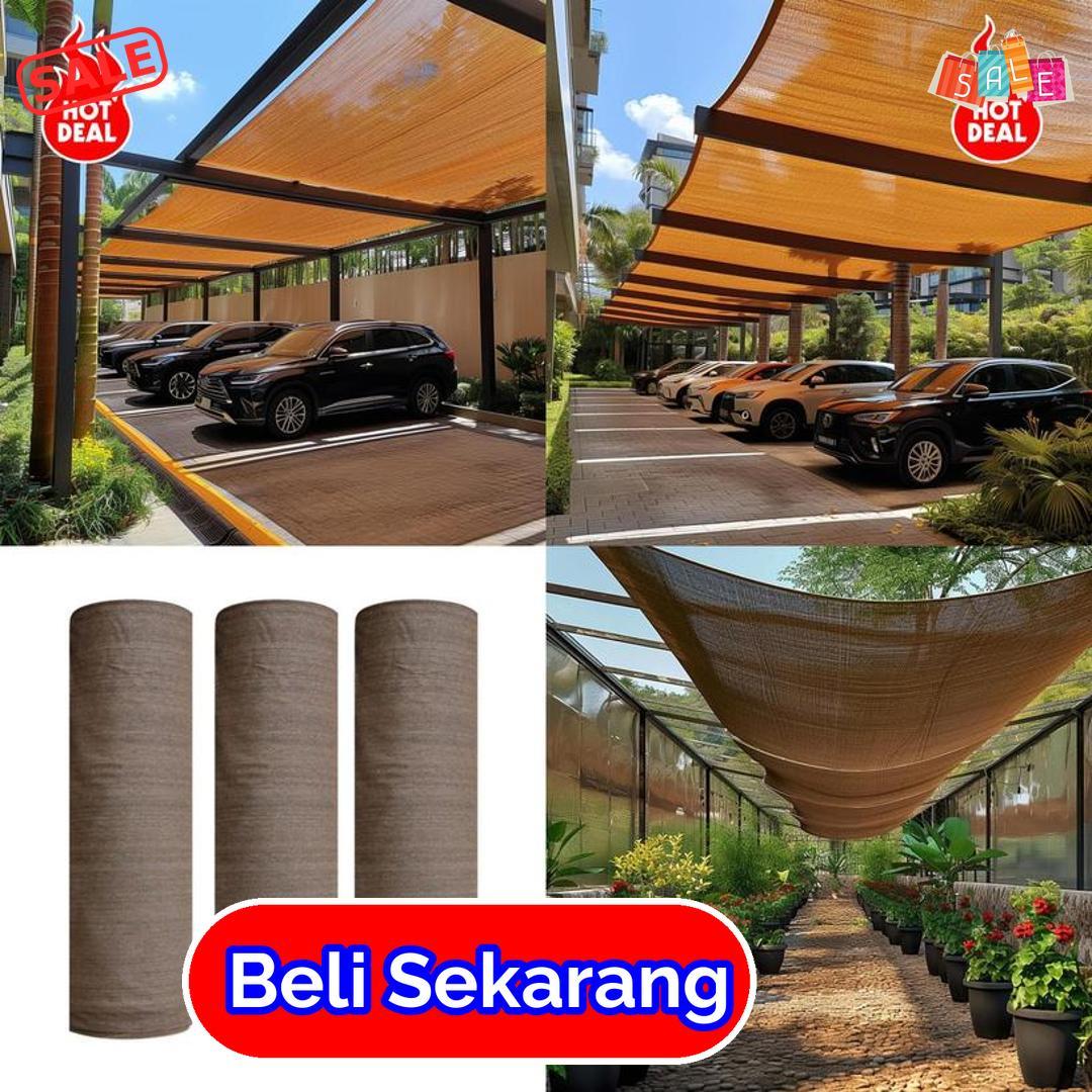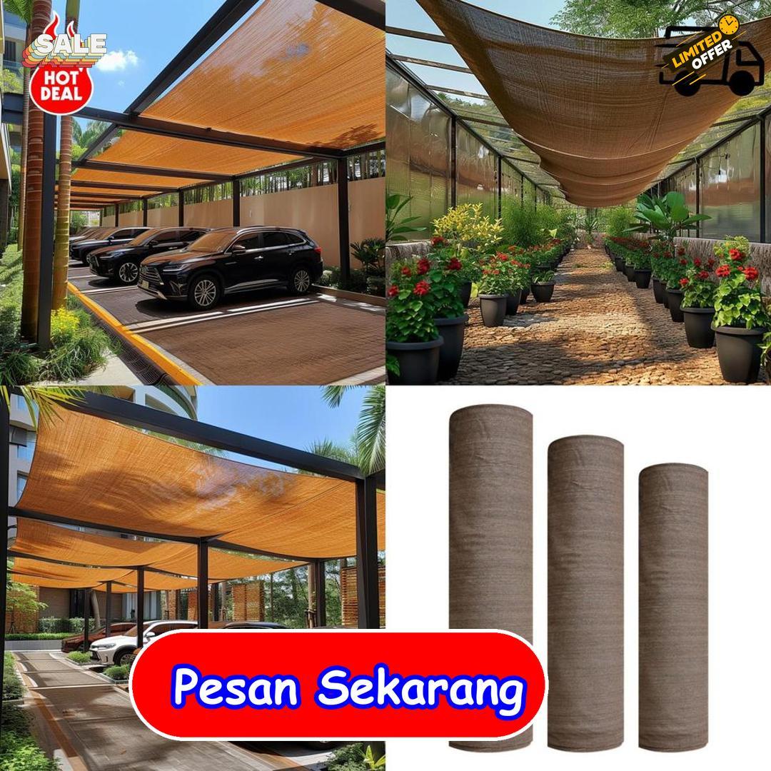 hari. Dengan tingkat naungan hingga 90%, produk ini sangat cocok digunakan di taman, greenhouse, atau kolam ikan. Bahan plastiknya kuat dan mampu menahan panas serta cuaca ekstrem. Warna coklat memberikan kesan alami dan menyatu dengan suasana sekitar.