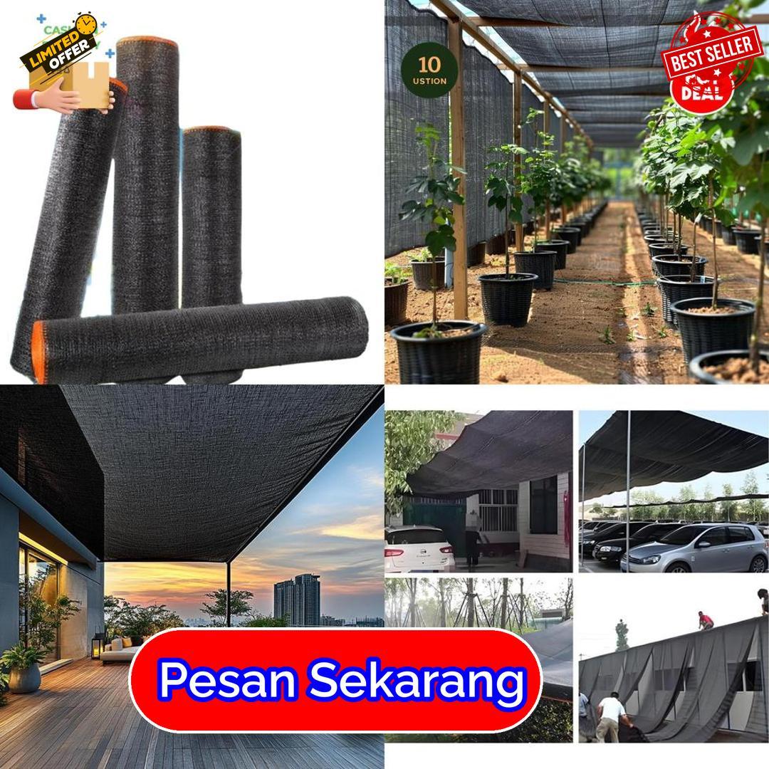 tetap teduh tanpa menghalangi sirkulasi udara. Produk ini mudah direntangkan, ringan, dan tidak membutuhkan instalasi rumit. Warna gelapnya membantu menyerap cahaya sehingga menurunkan suhu secara alami. Segera dapatkan paranet peneduh ini untuk perlindungan