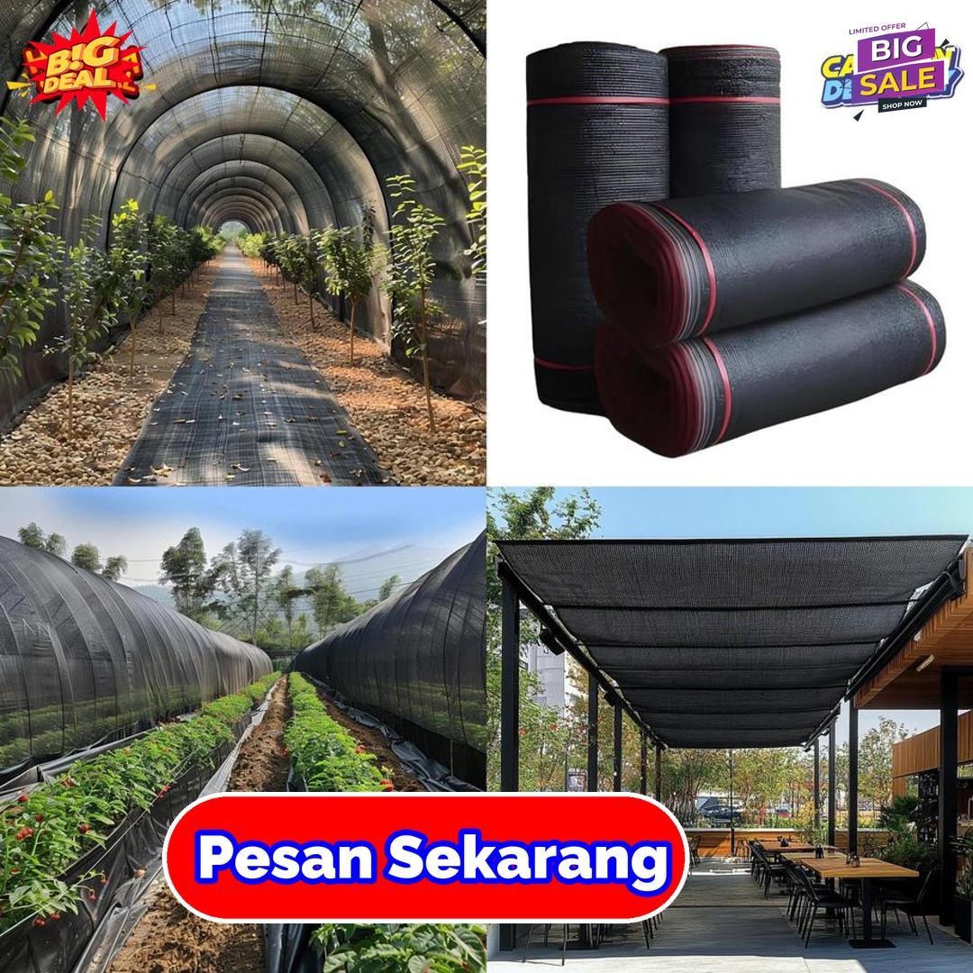 Paranet 75% ini hadir dalam ukuran lebar 3 meter dan tersedia dalam satu roll panjang, cocok untuk berbagai kebutuhan peneduh luar ruangan. Terbuat dari bahan plastik kuat yang tahan panas dan sinar UV sehingga cocok untuk melindungi kebun, taman, atau lahan terbuka. Paranet ini efektif mengurangi intensitas sinar matahari langsung dan menjaga suhu di bawahnya agar tetap sejuk. Tekstur jaring yang kokoh namun fleksibel memudahkan pemasangan dan dapat menyesuaikan berbagai bentuk lahan. Warna hitam netral membuat paranet ini tampak rapi dan menyatu dengan lingkungan sekitar. Produk ini tahan lama dan tidak mudah melar meskipun digunakan dalam waktu lama di bawah terik matahari. Dengan satu roll paranet ini, area luar ruangan Anda bisa terlindungi dengan optimal dari panas dan cahaya berlebih.