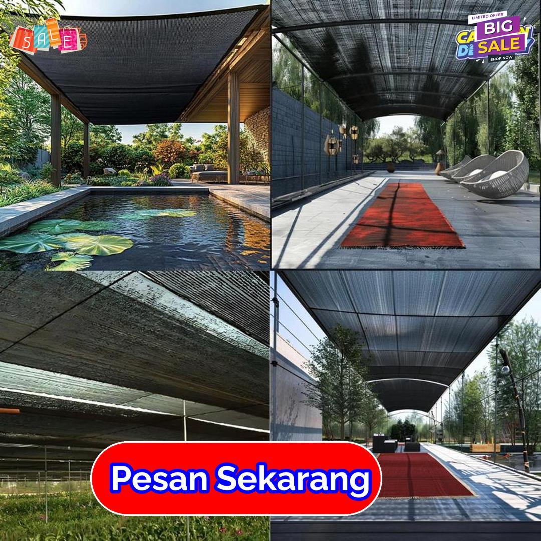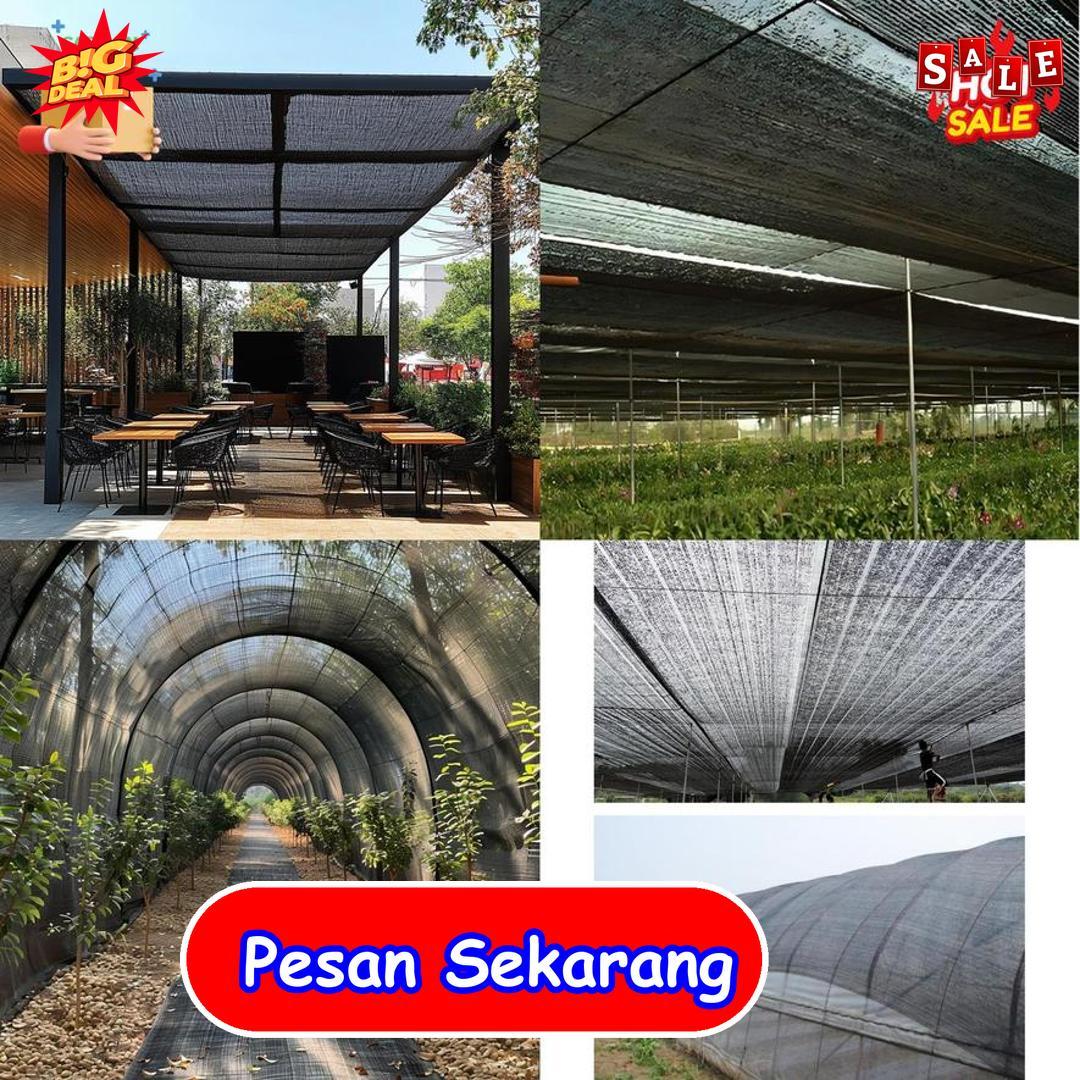 Paranet ini mudah dipasang, fleksibel, dan bisa digulung kembali saat tidak digunakan. Warna umum seperti hitam dan hijau membuat