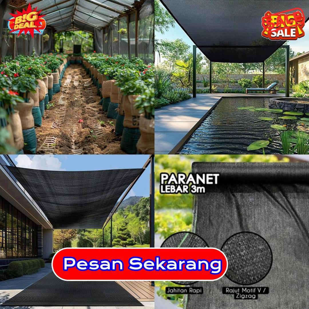 bahan plastik lentur dan kuat, paranet ini tahan terhadap cuaca lembap dan panas tinggi. Penggunaannya sangat efisien untuk taman kecil, pekarangan, atau area hijau di sekitar hunian. Paranet ini mudah dipasang dan dapat disesuaikan sesuai bentuk lahan yang ingin dilindungi.