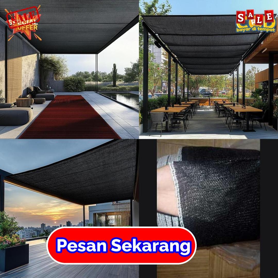 yang umum adalah lebar 3 meter dengan panjang roll yang dapat disesuaikan. Bahan plastik berkualitas tinggi digunakan untuk memastikan produk tahan lama dan kuat menghadapi panas serta cuaca ekstrim. Pilihan 75% cocok untuk peneduhan sedang, sedangkan
