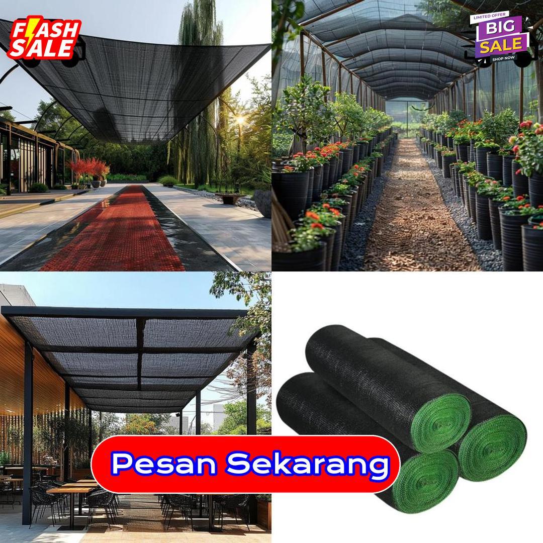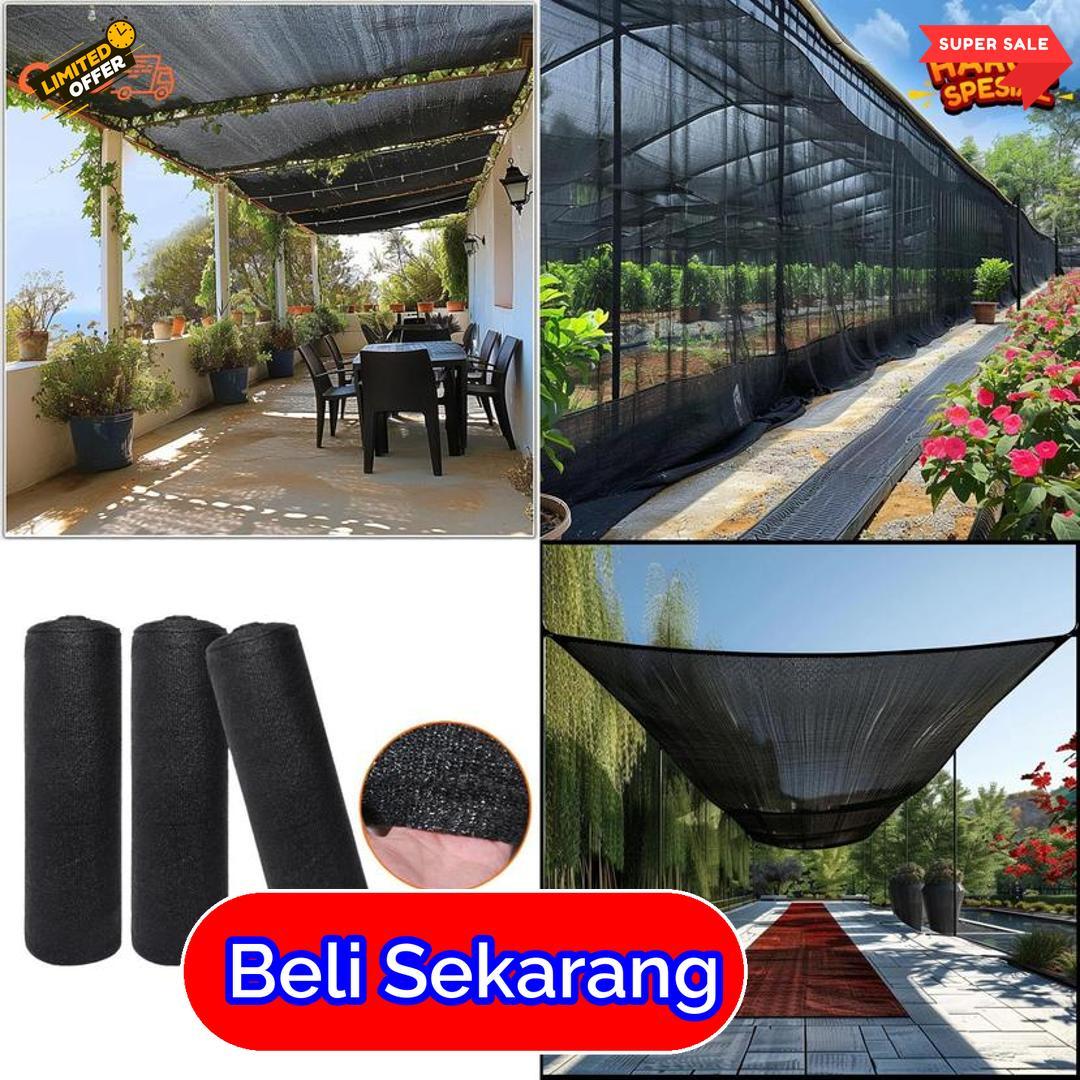 dan dapat bertahan dalam pemakaian jangka panjang. Struktur jaring dirancang untuk menahan panas dengan tetap menjaga kesegaran di bawahnya. Produk ini ringan, mudah disimpan, dan praktis digunakan di berbagai kebutuhan luar ruangan. Segera gunakan paranet shading 90% ini untuk melindungi ruang terbuka Anda dengan cara yang efisien dan fungsional.