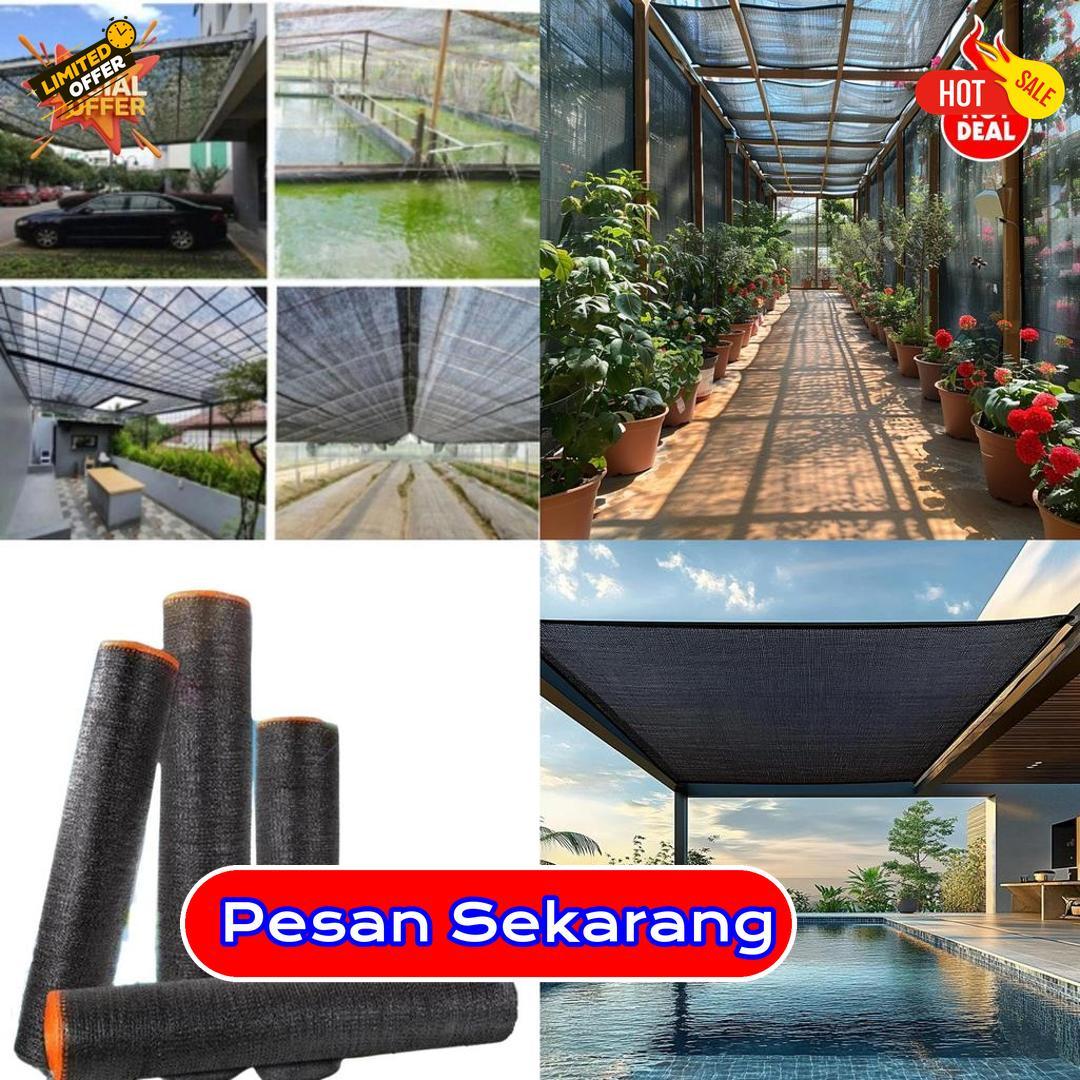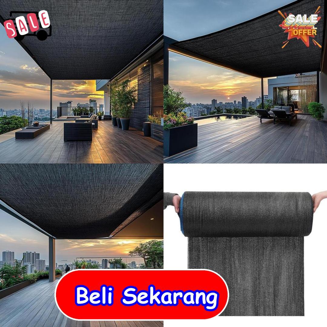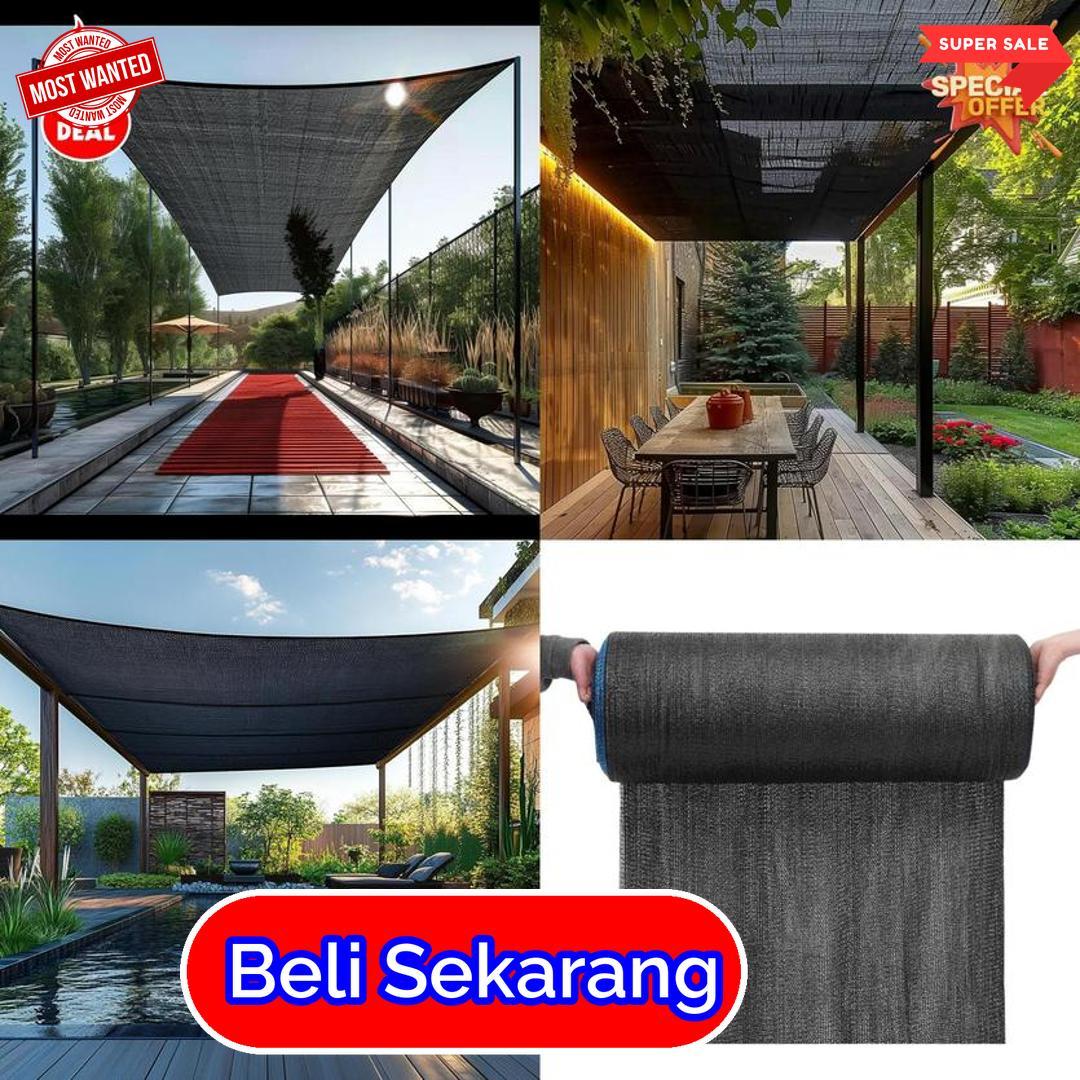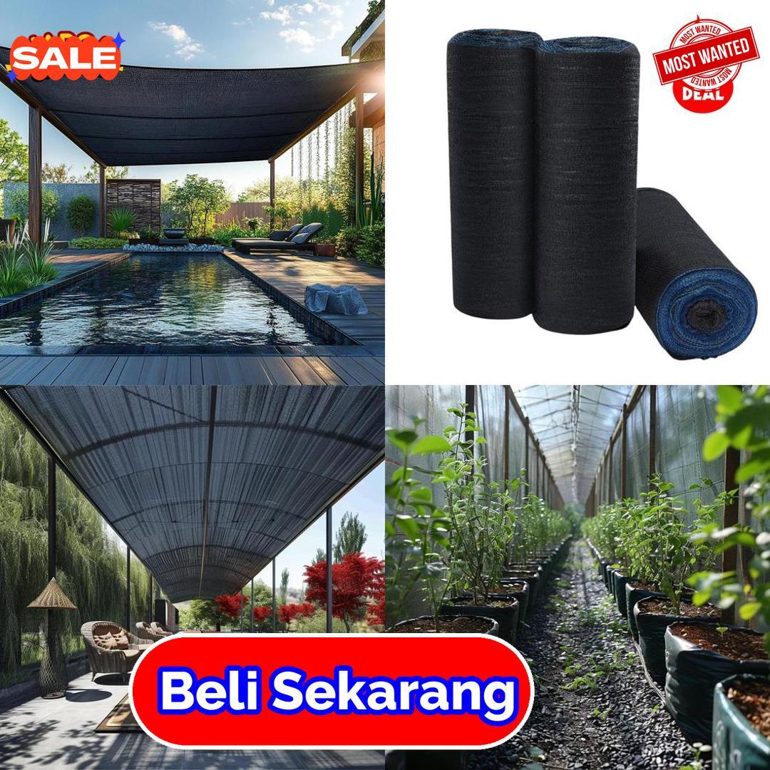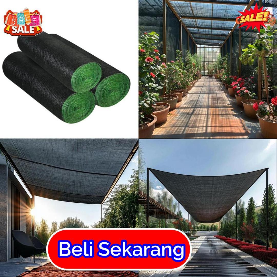 digunakan di halaman, taman, atau tempat parkir agar tetap teduh dan nyaman. Jaring ini dibuat dari bahan yang kuat namun ringan dan mudah digunakan. Dengan lebar besar dan panjang 100 meter, pemasangan menjadi lebih praktis dan efisien. Warna netral seperti hitam