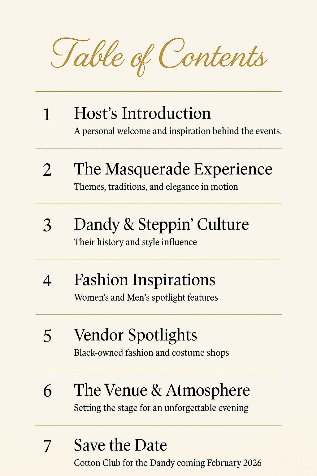 We are thrilled to present: The Grand Masquerade (October 25, 2025), and Cotton Club for the Dandy (February 14, 2026).
