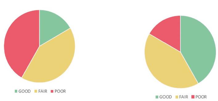 General considerations Urban fabric 1 Urban fabric 2 Criteria General considerations Urban fabric 1 Urban fabric 2 GOOD FAIR POOR URBAN FABRIC 1 URBAN FABRIC 2 42% 17% 41% 42% 17% 41%
