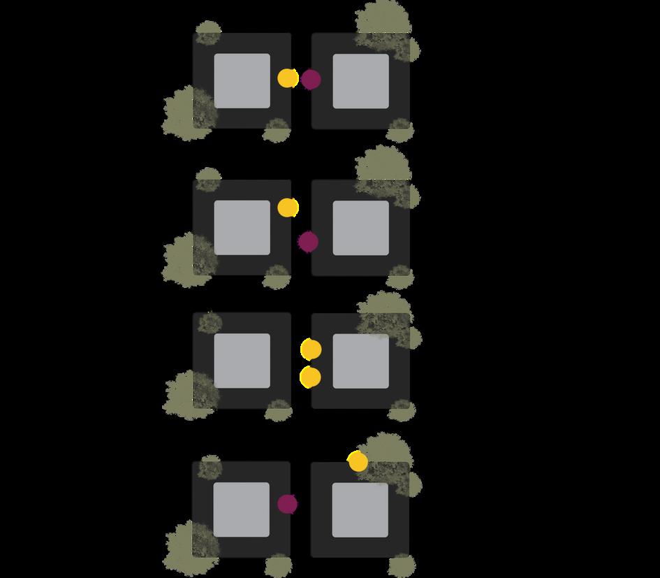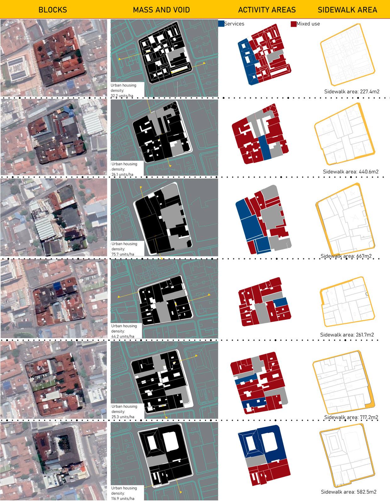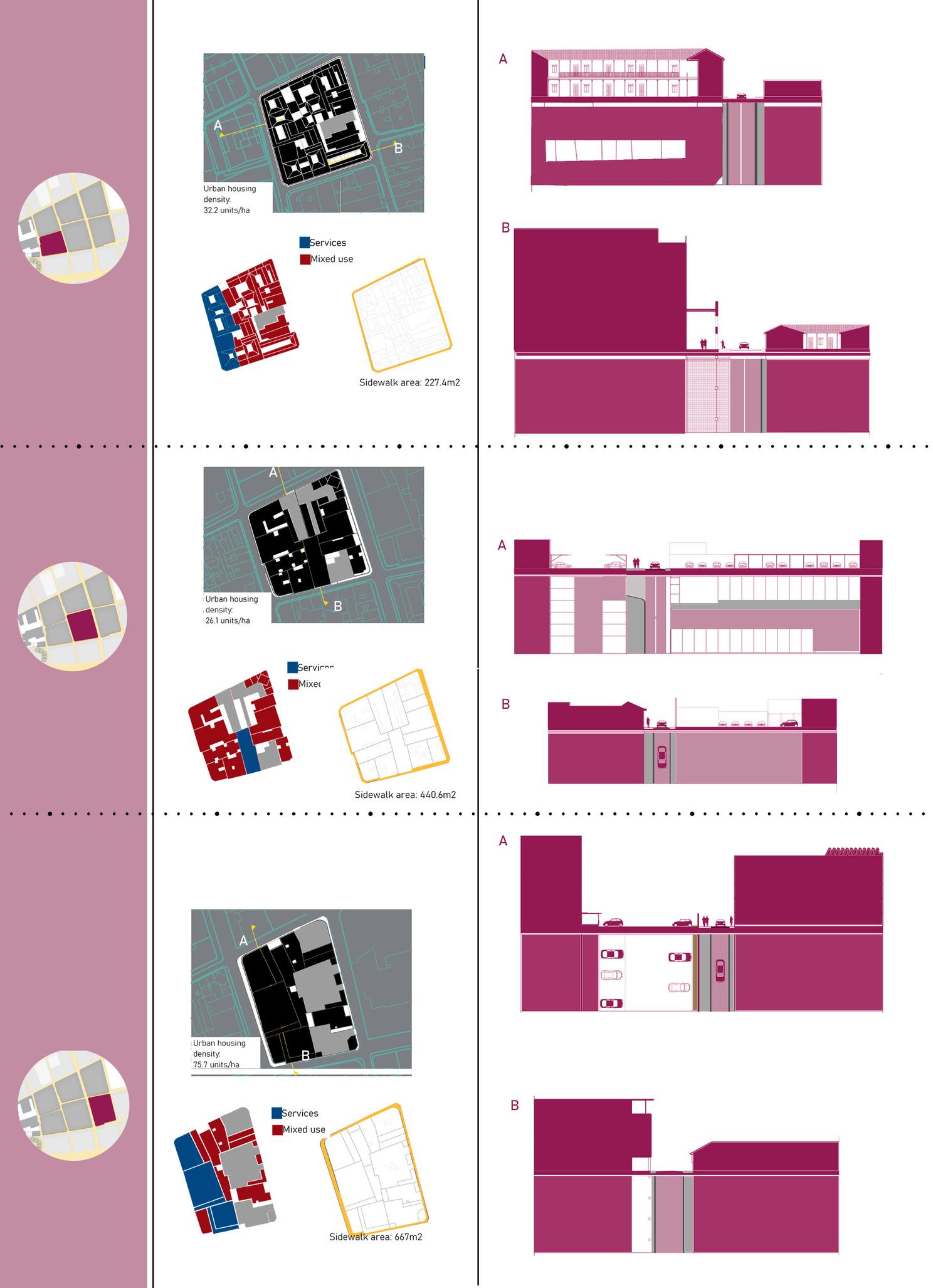 -The center has variety in the types of accesses,in general, it has accesses every 6 meters, which allows a diverse dynamic in the routes of the city center.