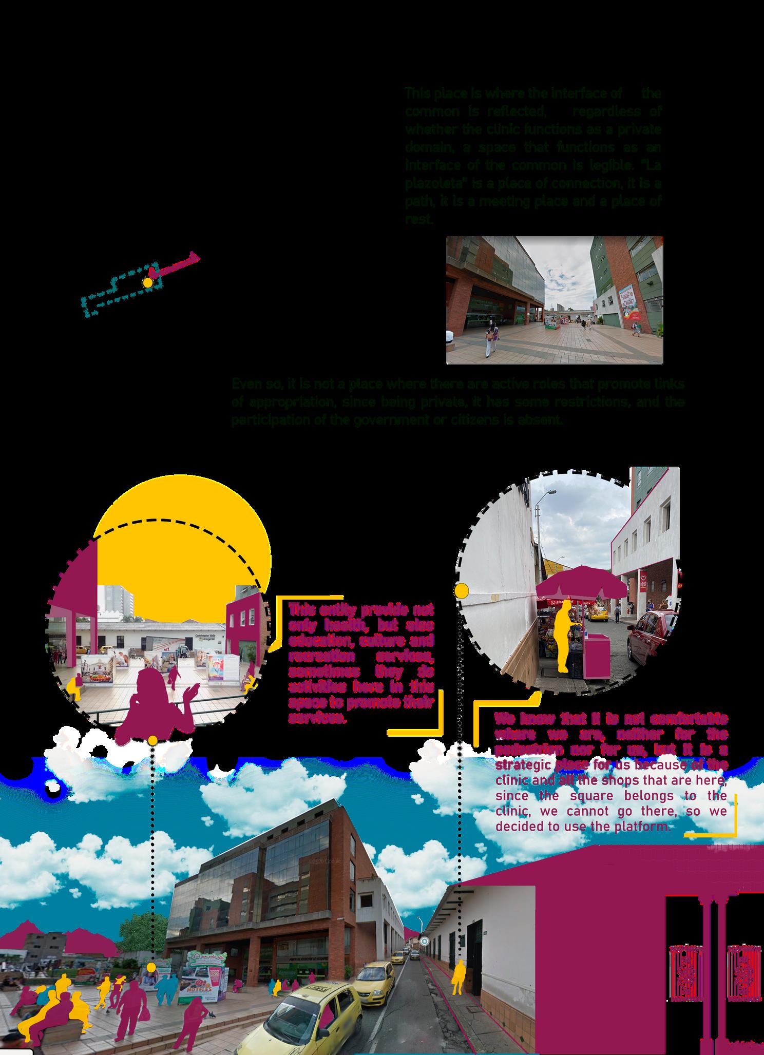 From the morphological and social analysis it was found that public space is a good element to discover why the line between the public and private is so marked, it also has the potential to be the channel to start the construction of citizen practices based on the common.