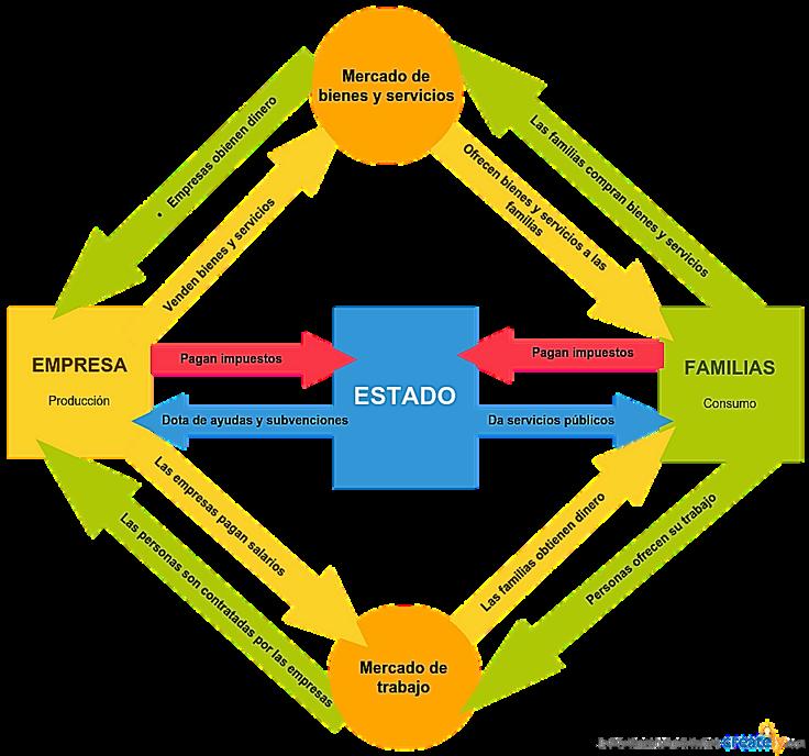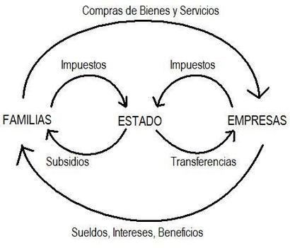 Cadaagenteofreceyrecibealgodentro del circuito, mientras las familias y empresas deben aportar al estado (impuestos), el Estado debe administrar dichos aportes recibidos por ambos con el fin de generar servicios por separado para cada agente que los beneficien, ya sea la facilidad en la calidad de vida o calidad de los productos en las empresas, servicios públicos, seguridad socialalaspersonas,entreotros