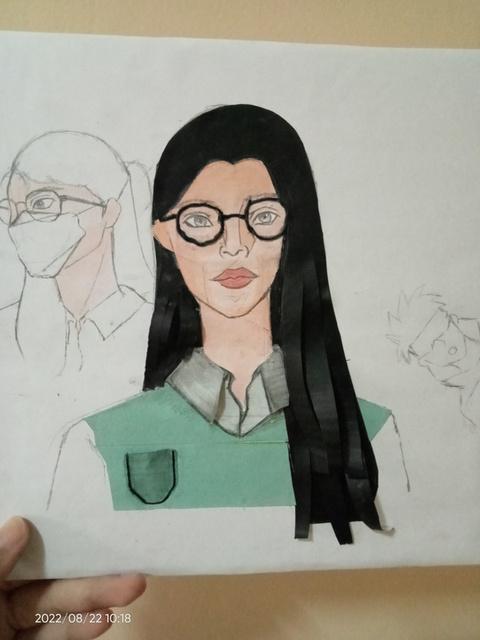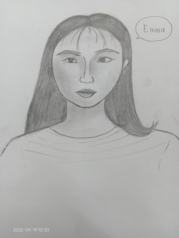 I drew one of my friend, Emma. While I drew this, my other friend said that it looks like her mother's face.