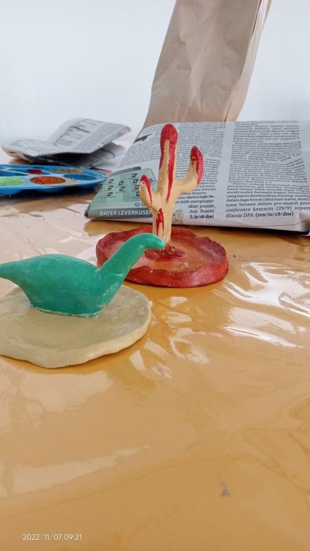 I made a random dinosaur and cactus miniature. I think I'll name it "The boring life dinosaur" and "cactus from hell". It was so difficult to set a nice view for this photo, I give up and this is what it become