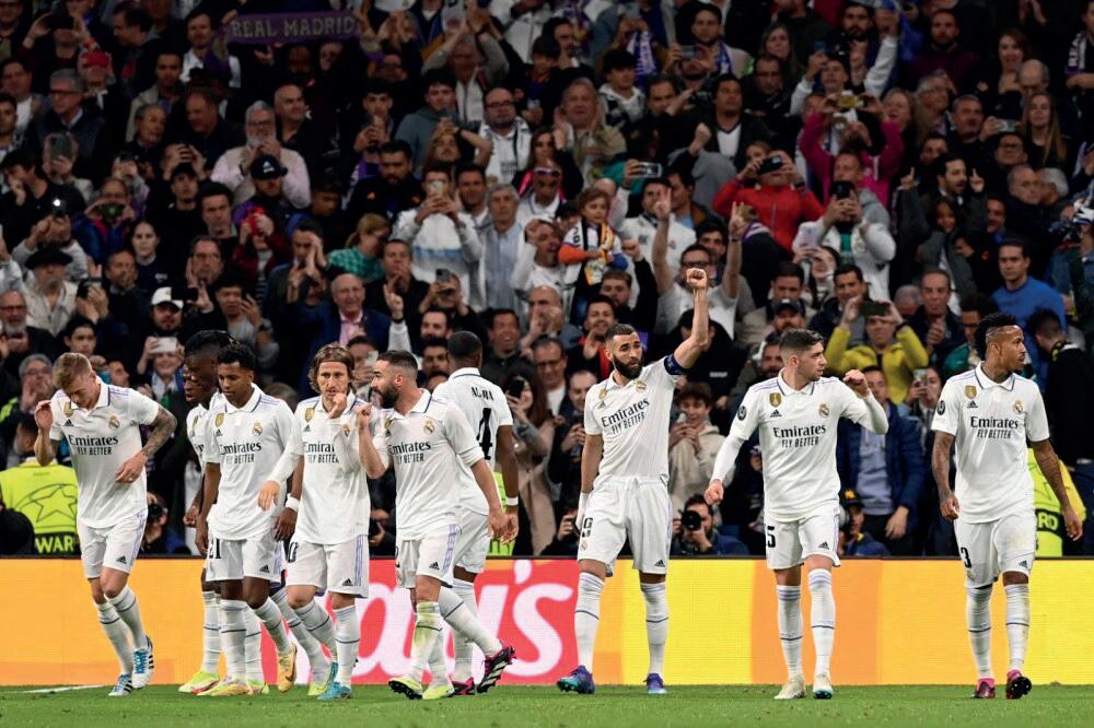 Karim Benzema avisó con un disparo casi sin ángulo detenido por Kepa (12), antes de volver a aparecer para empujar a gol un balón que había dejado muerto sobre la línea su compañero Vinicius (21), tras rematar un centro de Dani Carvajal.
